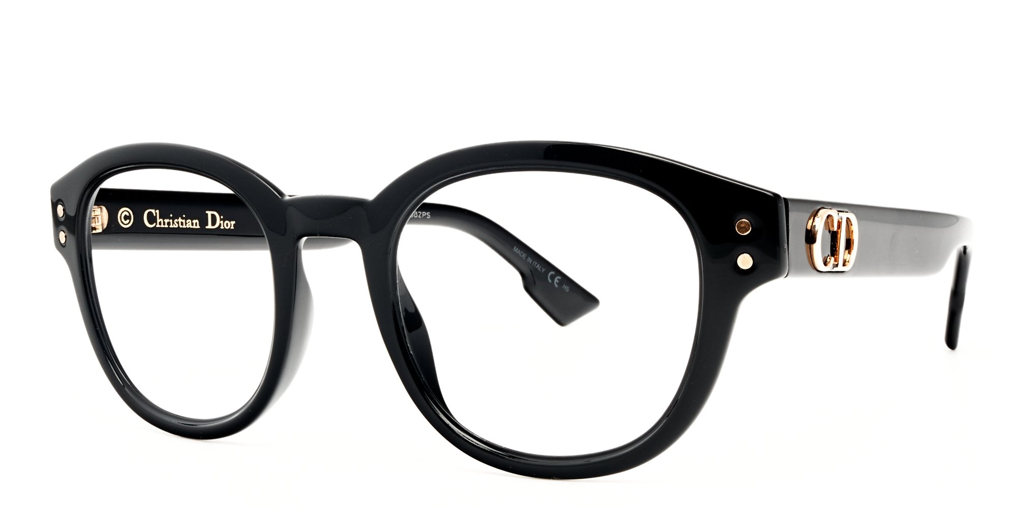 The Dior CD 2 are the sleek, retro eyeglasses that will not let you go out of style. Premium acetate was cut with architectural precision into a round shape that will complement your face and the look is tied together by the classic Dior logo embellishing the temples. The combination of black and gold is striking, yet feminine and will ensure a one of a kind look.