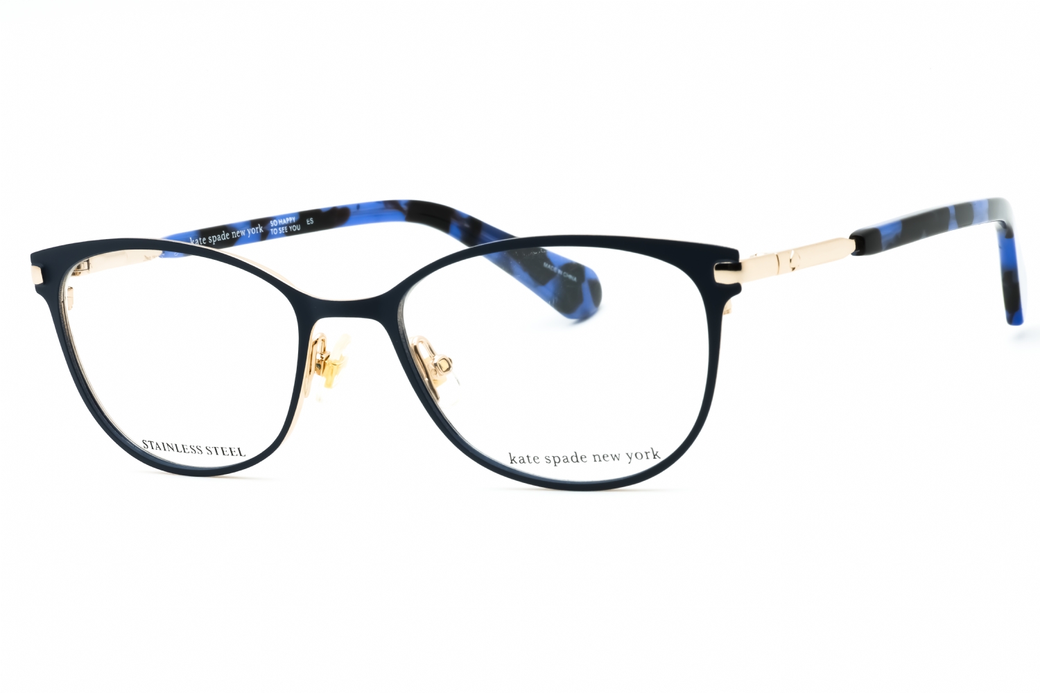 The Jabria eyeglasses from Kate Spade are a modern interpretation of a classic, sophisticated style. The slim, full rim frames are made from a combination of lustrous plastic and lightweight metal that holds its shape beautifully. Flexible spring hinges keep their initial adjustment for comfort. Sleek temples are wider at the tips for a secure fit, and feature the signature Spade logo. If your personal style combines professional looks with a contemporary flair, the Jabria from Kate Spade is for you.