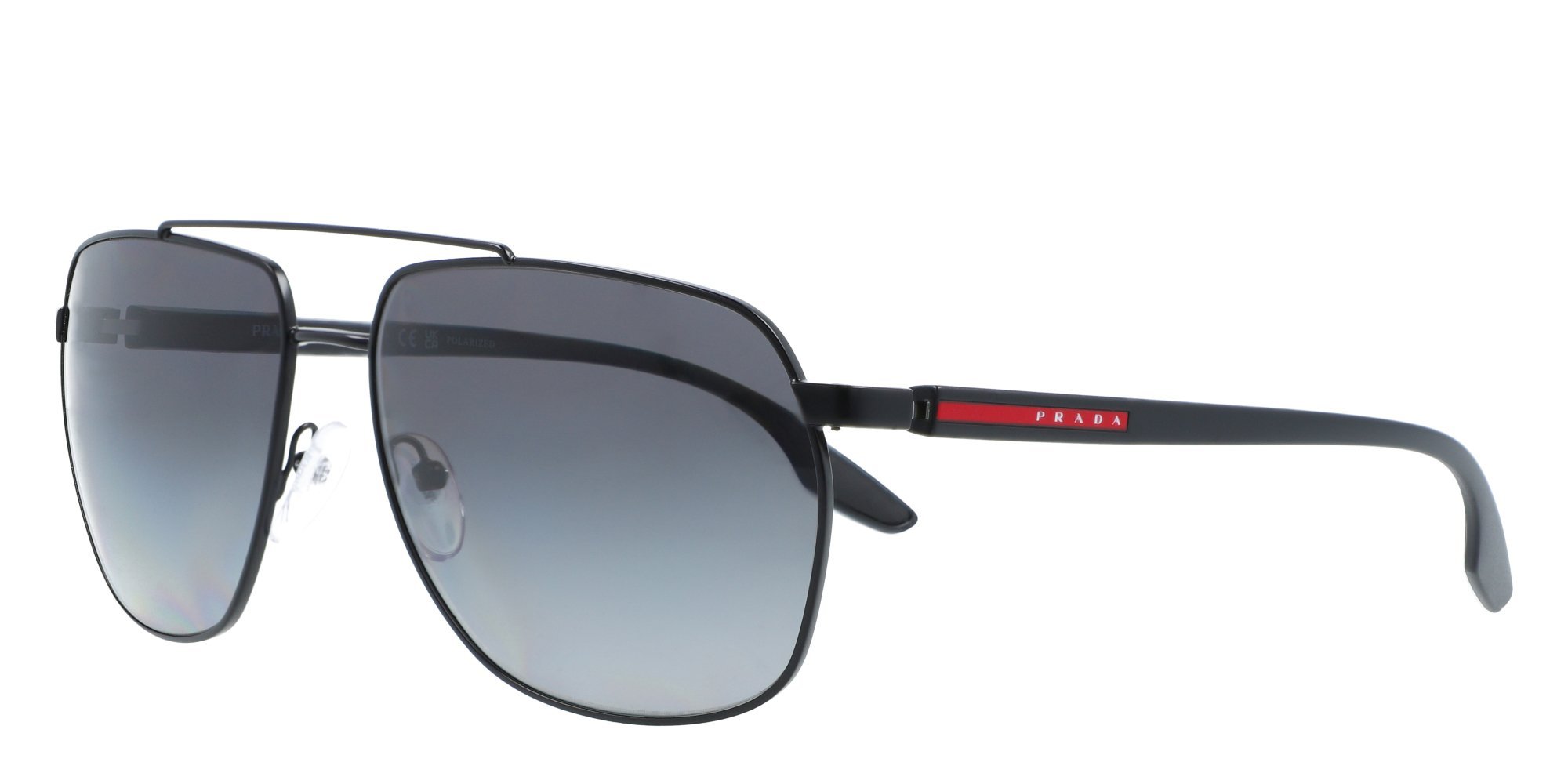 Expand your style options with the Prada PS 55VS sunglasses. First launched in the 1950s, these shades are every bit as fashionable as the iconic teardrop shaped aviators. The PS 55VS features a thin yet sturdy metal frame to keep up with your daily exploits, with rubber temple tips so they stay firmly in place. The frame's stylish double bridge pairs with the oversize, squared off lenses to flatter oval, round, and oblong faces. On a morning drive or a mid afternoon stroll, protect your eyes with the classic lines of these aviator sunglasses.