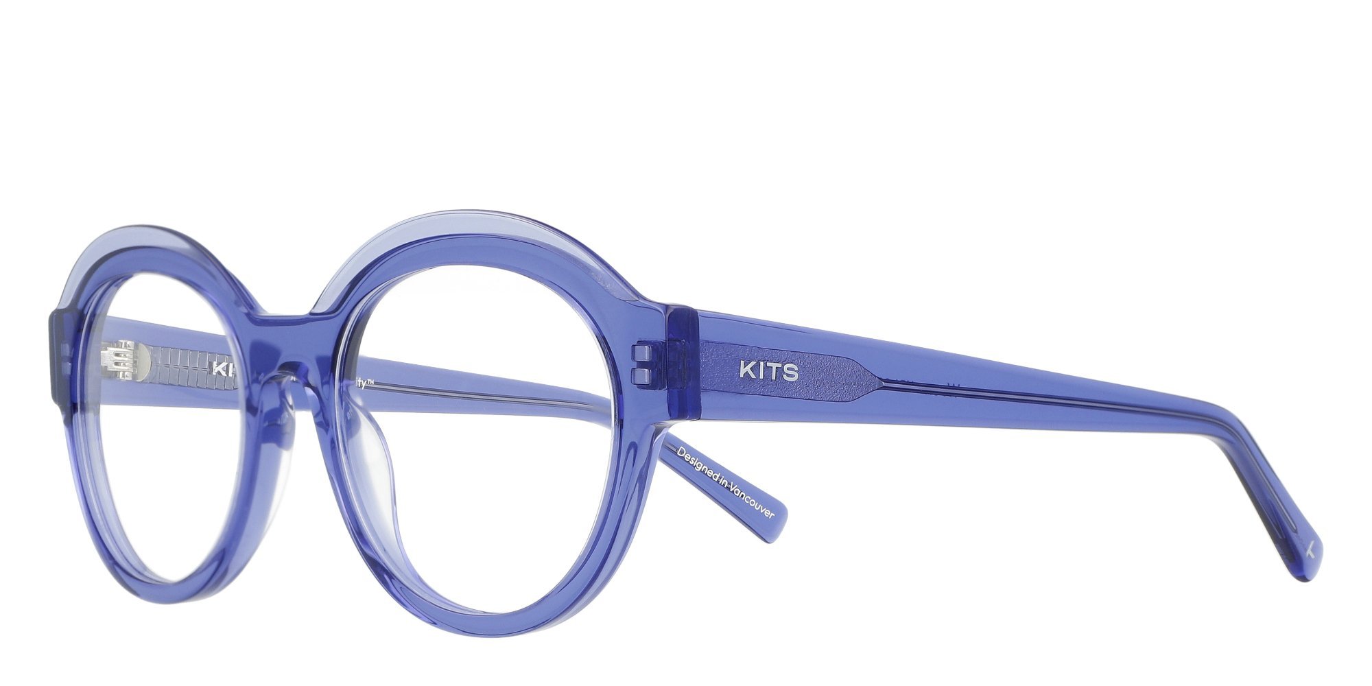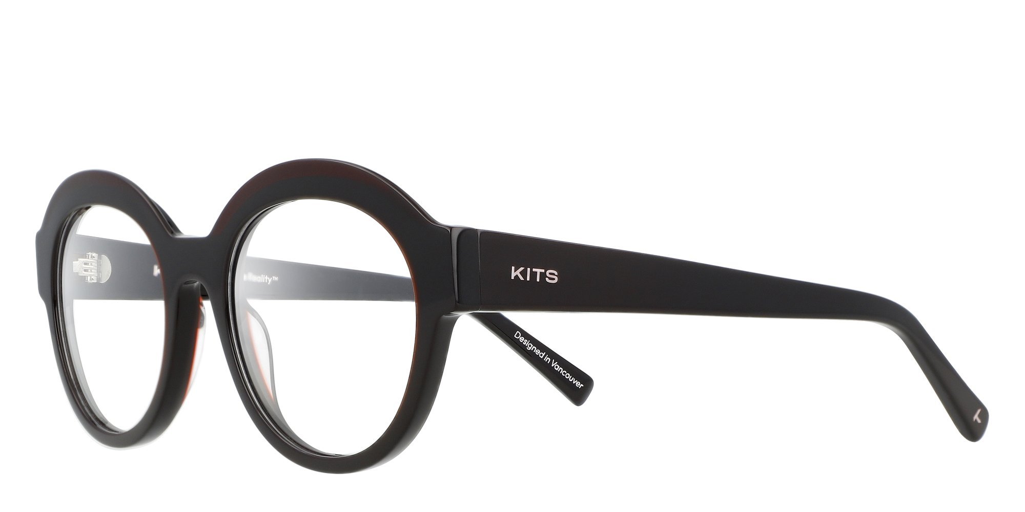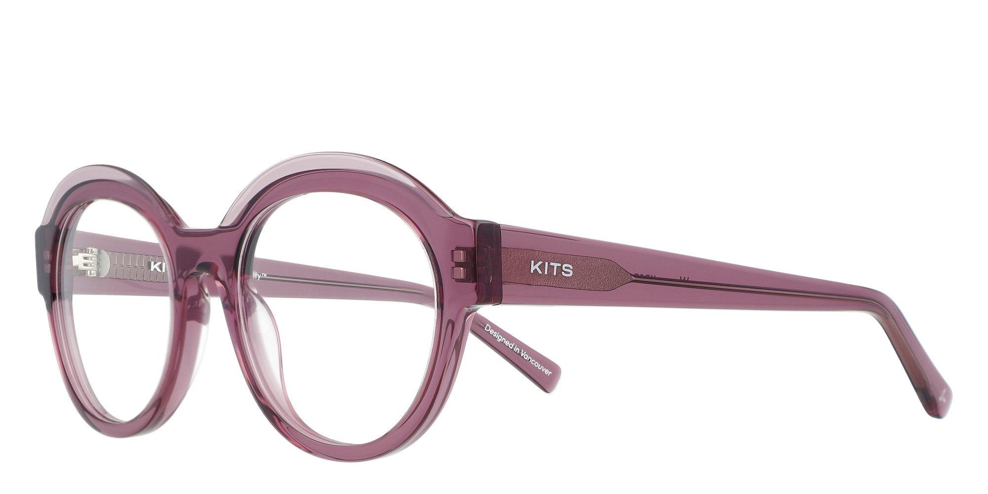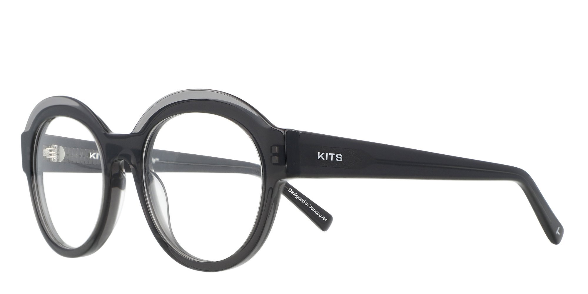 Round acetate-frame glasses featuring beveled detailing at browline.