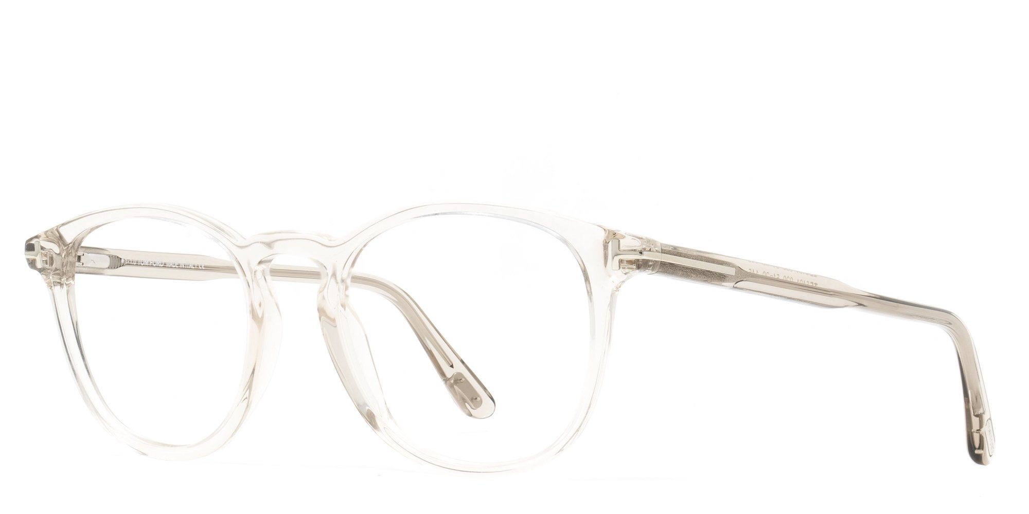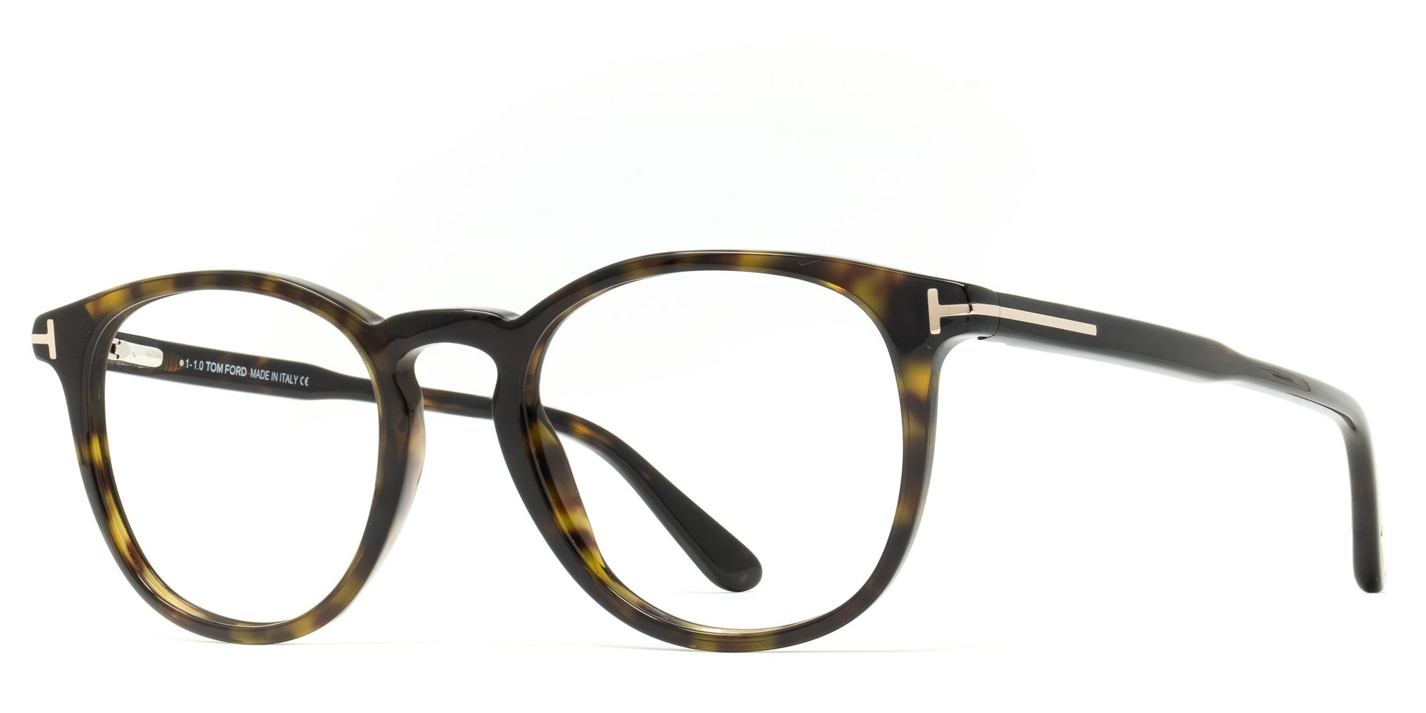 Tom Ford's elegant T marking is the only accent on this time-tested style Popularized in the 1940's, this round silhouette has gotten better with age, as this modern interpretation with a bold keyhole bridge flatters a wide range of face shapes.