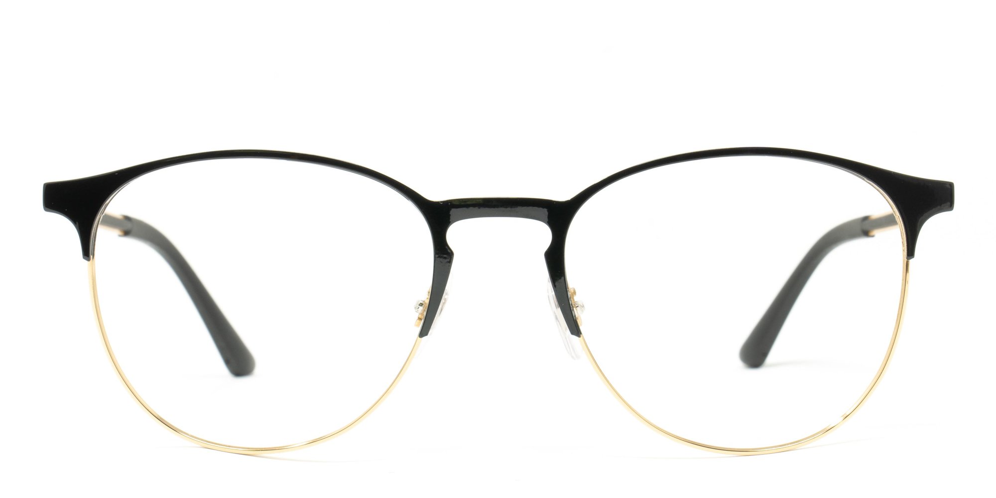 Refine your style wearing these RX6375 glasses from Ray-Ban. The frames feature a retro, round silhouette Ray-Ban elevates with the brand's classic attention to detail. Subtle wingtips enliven the round rims, and small rivets at the endpoints add interest. The metal rims are lightweight and sturdy, with a metal bridge and delicate temples for contrast. Coated temple ends provide comfort over the ears.