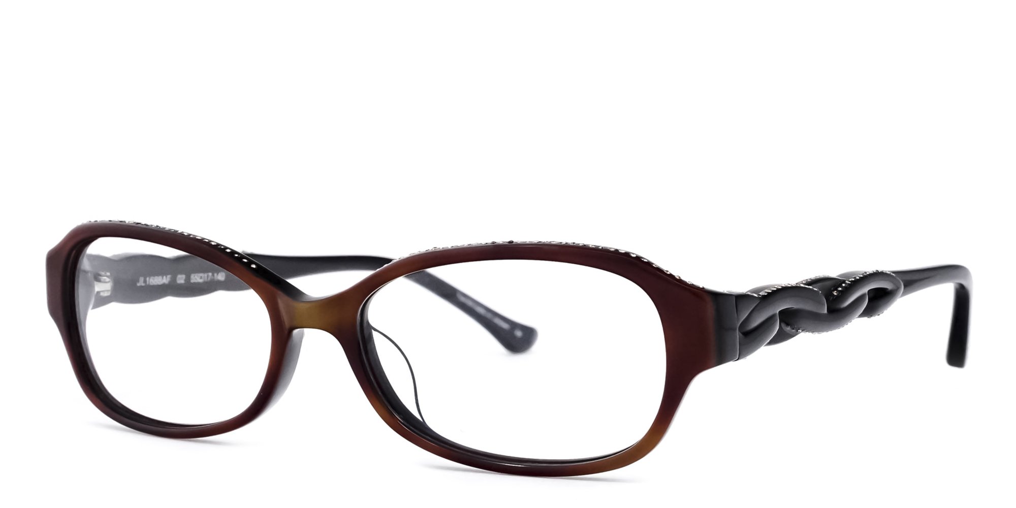 Make a bold fashion statement with Judith Leiber JL 1688 frames for women. The acetate frames of these eyeglasses are lightweight for added comfort, and boast impressive flexibility and durability. An embossed design on the bridge and rivets on the brow and temple ends provide subtle aesthetic appeal.
