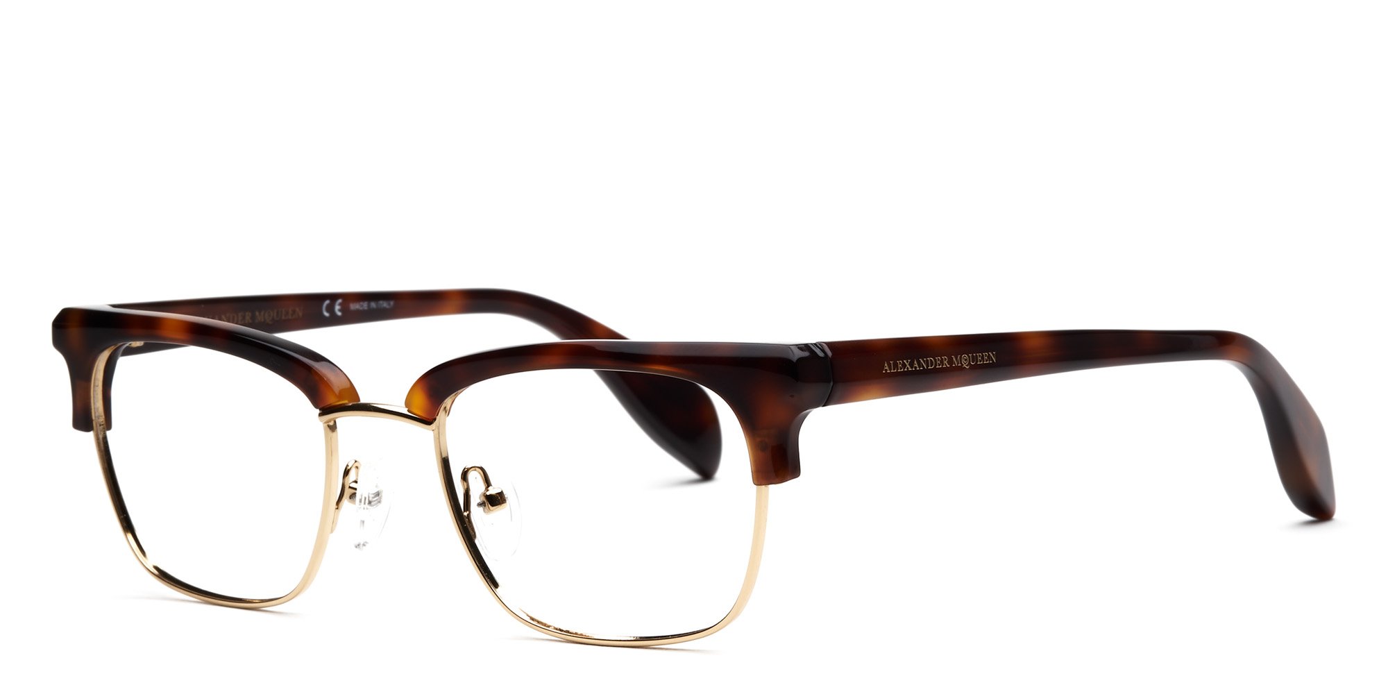 The AM0044O by Alexander McQueen is a captivating pair of eyeglasses that reflects the urbane and impeccable taste of the style savvy wearer. The full rim metal and acetate frame is strong and resists corrosion, yet its lightweight for comfort. These modern glasses possess a retro look, with the Alexander McQueen name at the temple and a saddle style bridge that distributes weight evenly to reduce pressure. Show your individual style when you step out wearing these on trend glasses from Alexander McQueen.