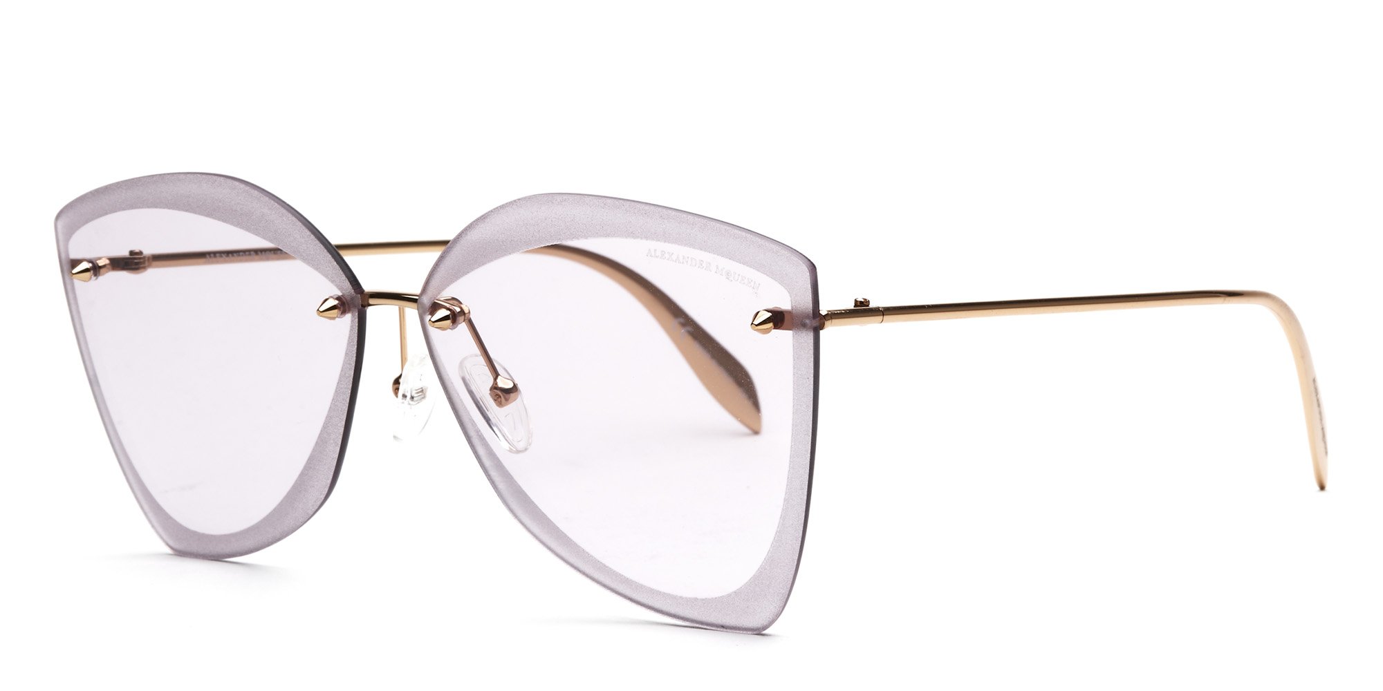 Alexander McQueen presents these distinctive AM0119SA eyeglasses for the wearer who prefers a classic silhouette with modern details. The cat eye frames are made in a lightweight but sturdy corrosion resistant metal. The temples come with comfortable tips that widen slightly for stability behind the ears. Adorned with spike rivets on the temple, these AM0119SA eyeglasses impart elegance to your everyday look.