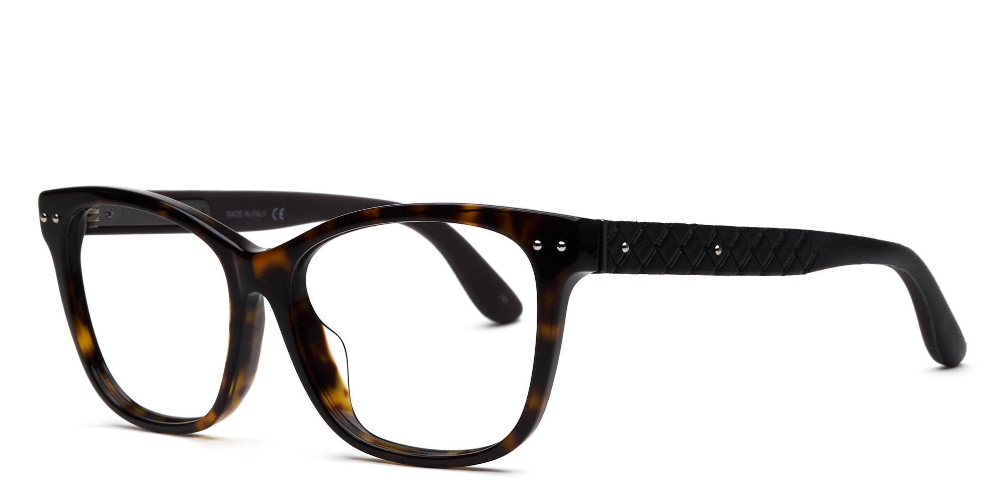 The BV0010OA eyeglasses by Bottega Veneta offer timeless good looks with a bold, retro-inspired wingtip design. Sporting a rugged full rim frame, these sturdy, round glasses endure through all your activities, from work to play. Comfort temples provide a personalized fit youll appreciate, and the rivet details at each temple add an elegant touch. Add a little geek-chic to your wardrobe when you step out wearing these contemporary BV0010O glasses by Bottega Veneta.