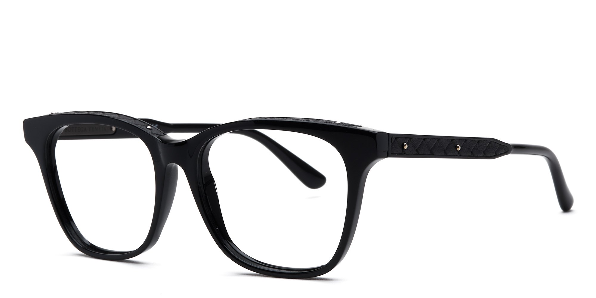 The BV0070O eyeglasses by Bottega Veneta speak to the wearer who embraces modern design but enjoys a little old school nostalgia. The cat eye frames are made in lightweight but sturdy acetate. A saddle bridge distributes the weight of the frames evenly across the face to reduce pressure for a comfortable feel. The sleek temples widen at the tips for stability behind the ears. Sturdy barrel hinges retain their initial balance for a comfortable fit, keeping these Bottega Veneta glasses in place throughout your busy days.