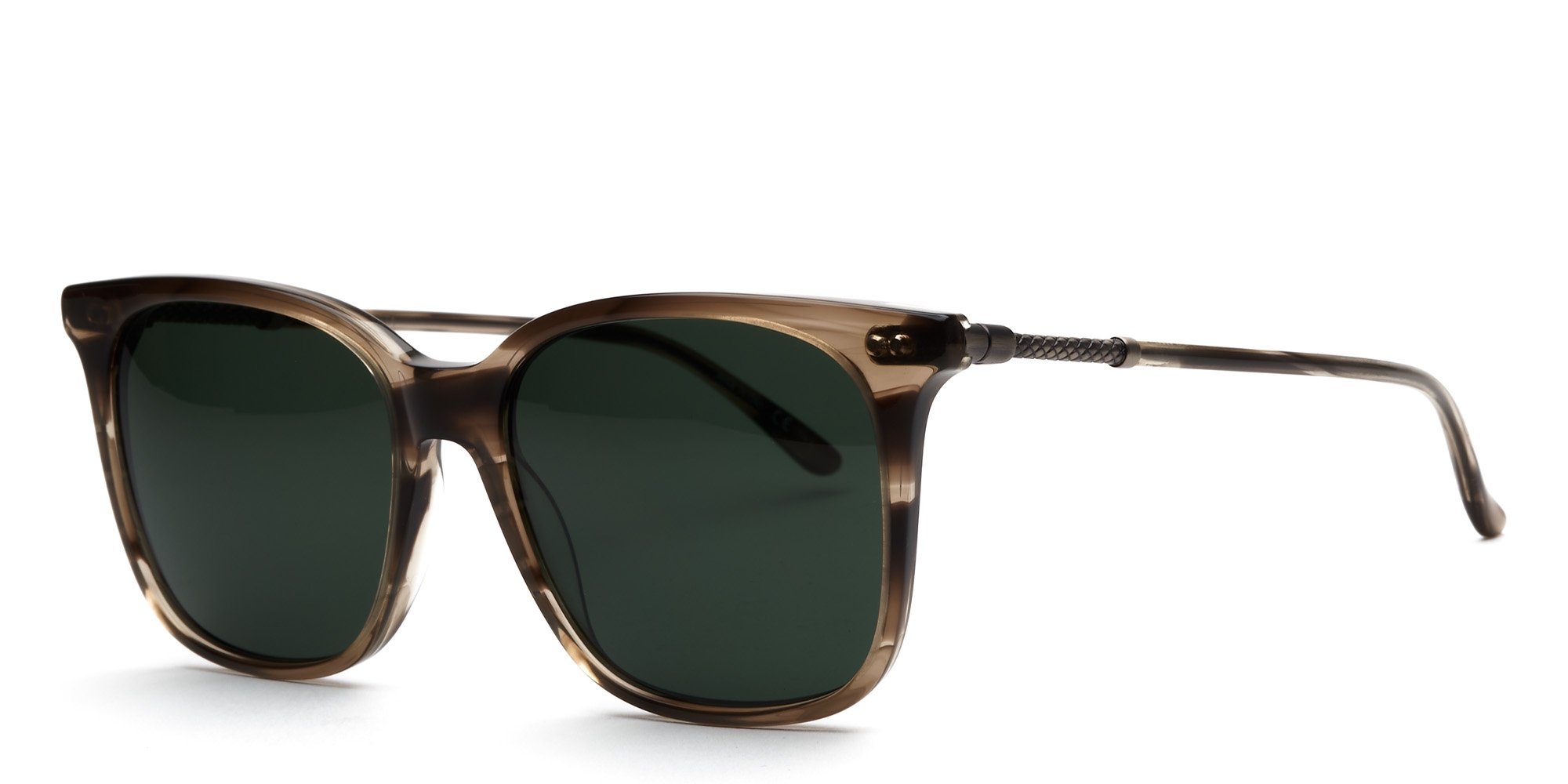 The BV0131S sunglasses by Bottega Veneta showcase a glamorous look for the modern wearer. The full rim, slight cat eye frames are crafted in hypoallergenic acetate, a lightweight, plant based plastic that effortlessly keeps up with an active lifestyle. The slim temples curve inward gently for stability behind the ears, and boast metallic detailing at the hinge for added appeal. Take the bold, classic design of these BV0131S sunglasses by Bottega Veneta on all of your outdoor adventures.