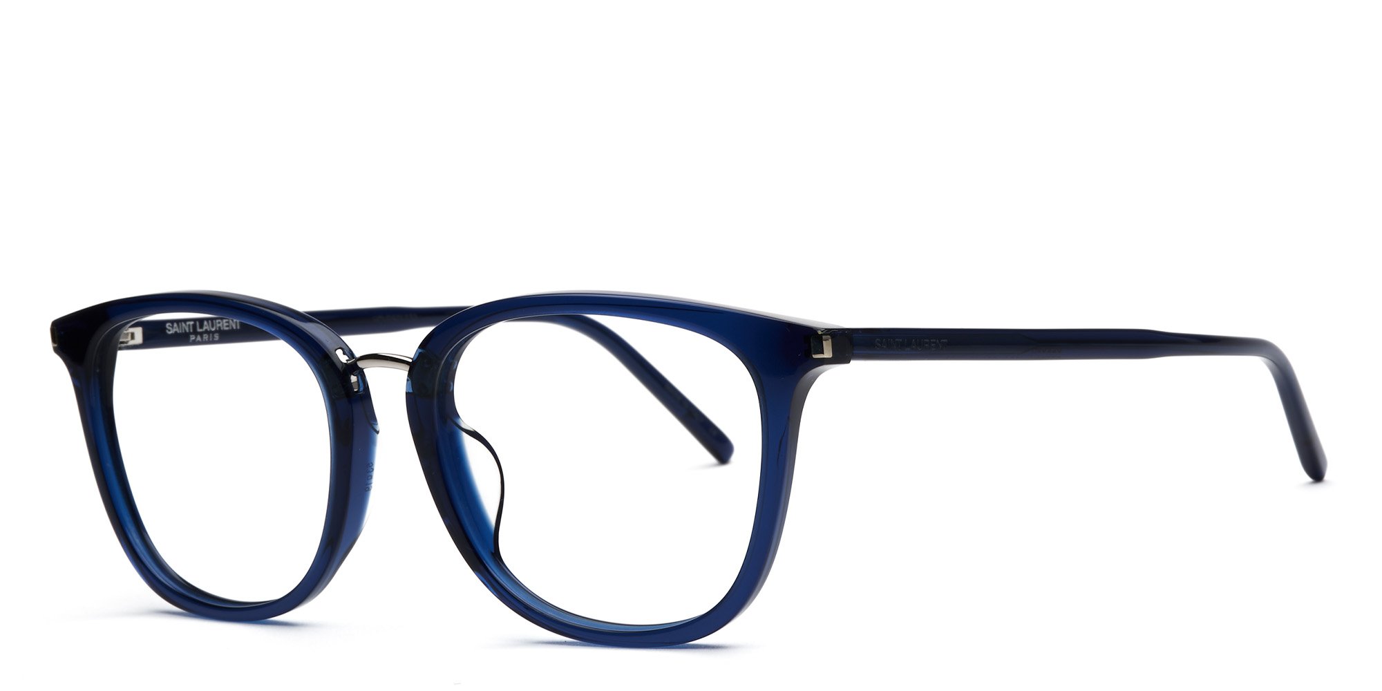 The SL 235F eyeglasses by Saint Laurent offer a clean, modern aesthetic with a chic urban vibe. A wingtip inspired shape and sturdy metal bridge design create a throwback 1950s silhouette. Full rim frames are crafted from lightweight, high impact acetate that stands up to your busiest activities, with slim temples for superior comfort. Step out in classic style with these vintage-inspired eyeglasses by Saint Laurent.