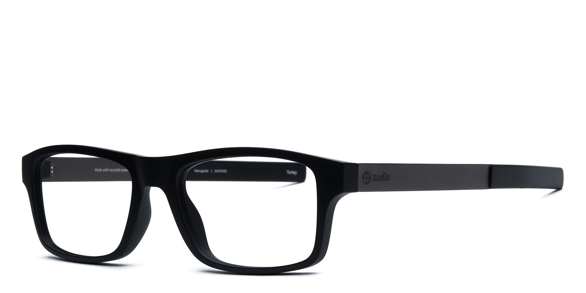 Enjoy clear vision in a dashing accessory wearing the Hornopiren eyeglasses by Karün. The frames showcase a professional rectangular shape and a sculpted nose bridge designed for balance and comfort. The finely crafted designer eyeglasses feature recycled metal temples, and ECONYL® regenerated nylon (from fishing nets from Patagonia and other discarded nylon) rims, resulting in hypoallergenic, lightweight, and durable frames.