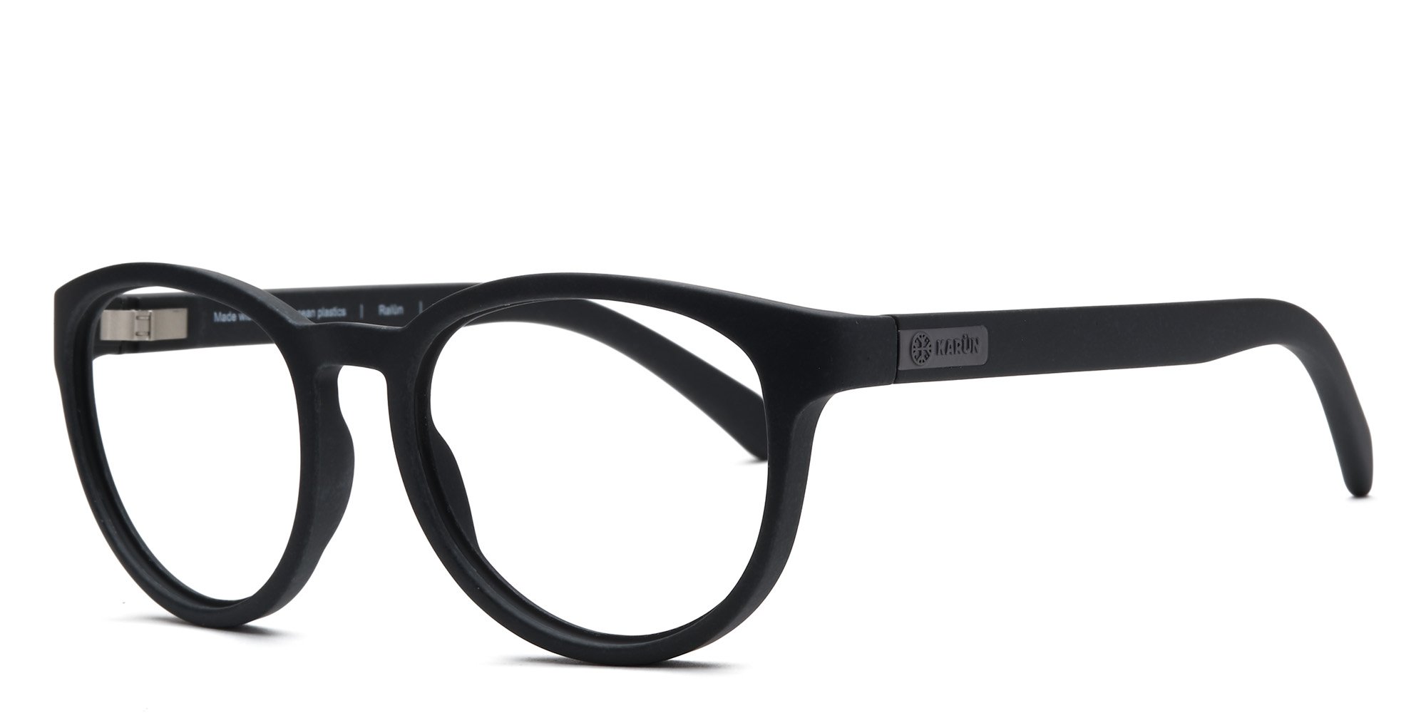 Karün offers a contemporary update to the classic round silhouette in these Ralun eyeglasses. The full rim frames are made from lightweight ECONYL® regenerated nylon (from fishing nets from Patagonia and other discarded nylon) thats comfortable to wear. A keyhole bridge distributes weight evenly, ideal for the wearer with a wide nose bridge.