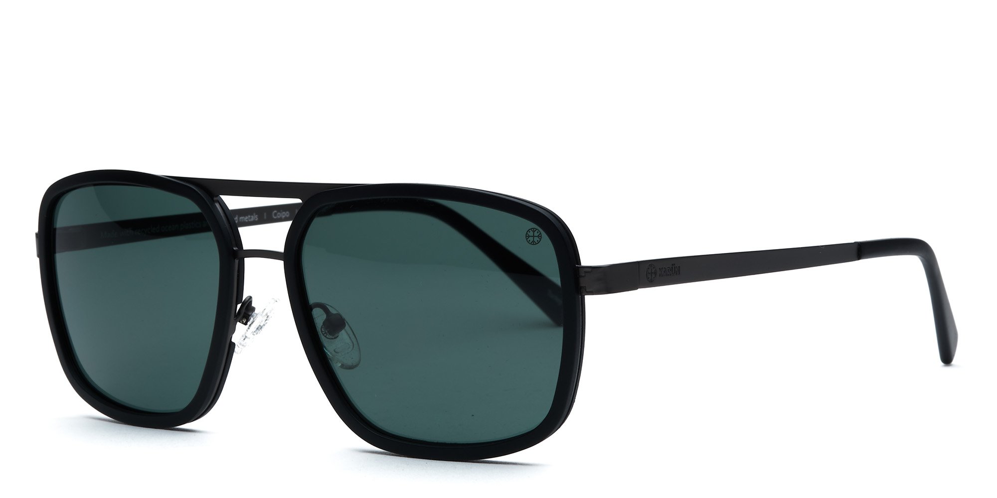 Karün reimagines a classic silhouette in these Coipo eyeglasses. Crafted in recycled metals and ECONYL® regenerated nylon (from fishing nets from Patagonia and other discarded nylon), the aviator style frames feature a sturdy double bridge that reinforces the stability of the rims. The temples are coated for a non slip grip, and come with sturdy barrel hinges that retain their initial adjustment for a comfortable, secure fit. Temple detailing and a signature logo add eye catching appeal to these uncomplicated glasses.