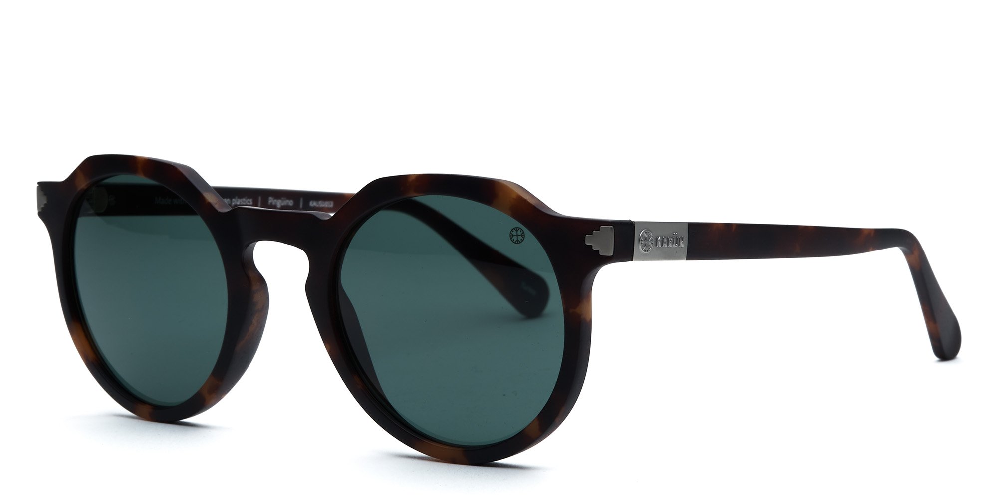 Stand out in chic, circular Pinguino sunglasses by Karün. These round sunglasses are somewhat reminiscent of the 1960s, but updated with subtle wingtips at the end pieces for a look that can lean serious or playful. Round frames soften the most angular faces, and especially flatter rectangular, square, and triangular faces. The ECONYL® regenerated nylon (from fishing nets from Patagonia and other discarded nylon) ensures comfort and durability. These round Karün sunglasses afford you a playful, standout style.