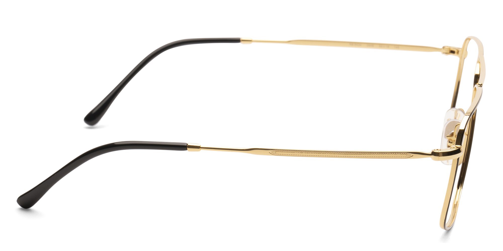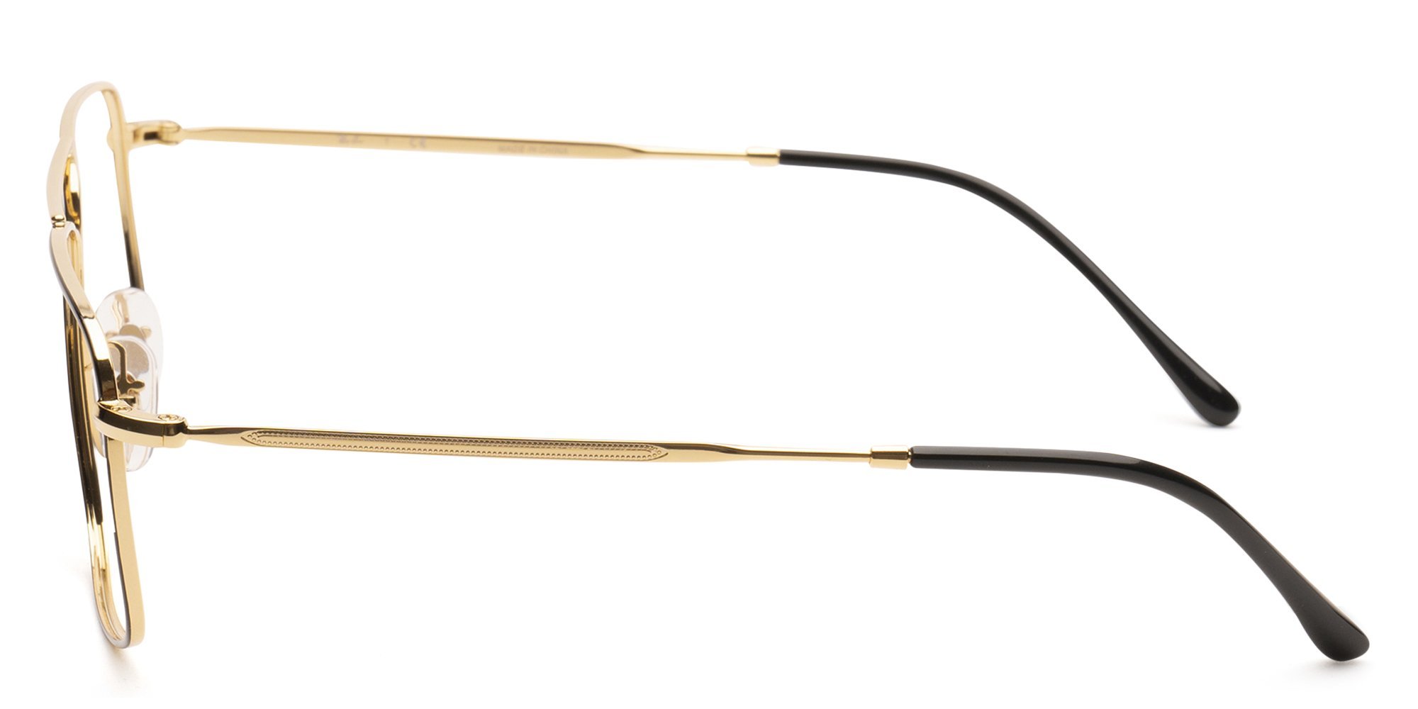 Watch your style take off in pilot inspired Ray-Ban RX6434 prescription eyeglasses. These full rim metal frames are corrosion resistant, with a decorative pattern in the temples. The double bridge and rectangular lenses make a horizontal profile that gives definition and contrast to an oval or heart shaped face. The coated temple tips and adjustable nose pads allow for a comfortable, snug fit that wont slip. To add a vintage touch to your everyday look, choose these stylish retro chic designer eyeglasses from Ray-Ban.