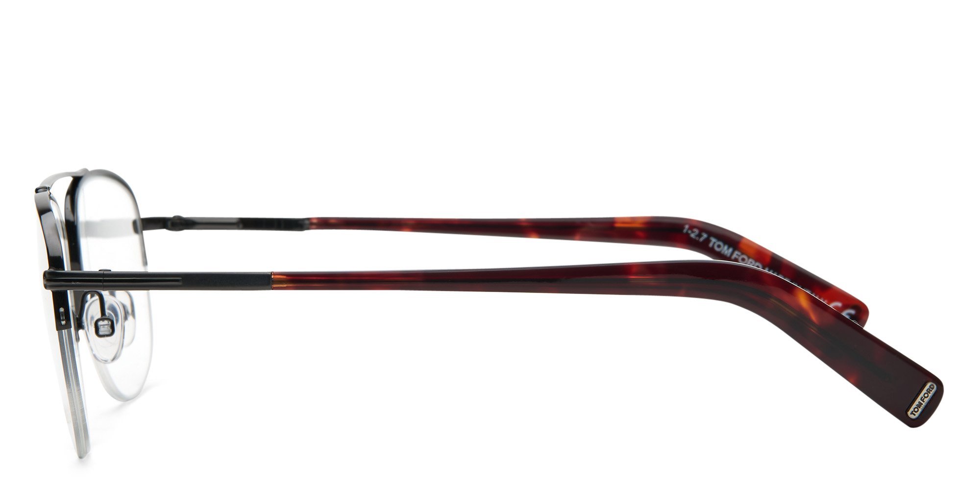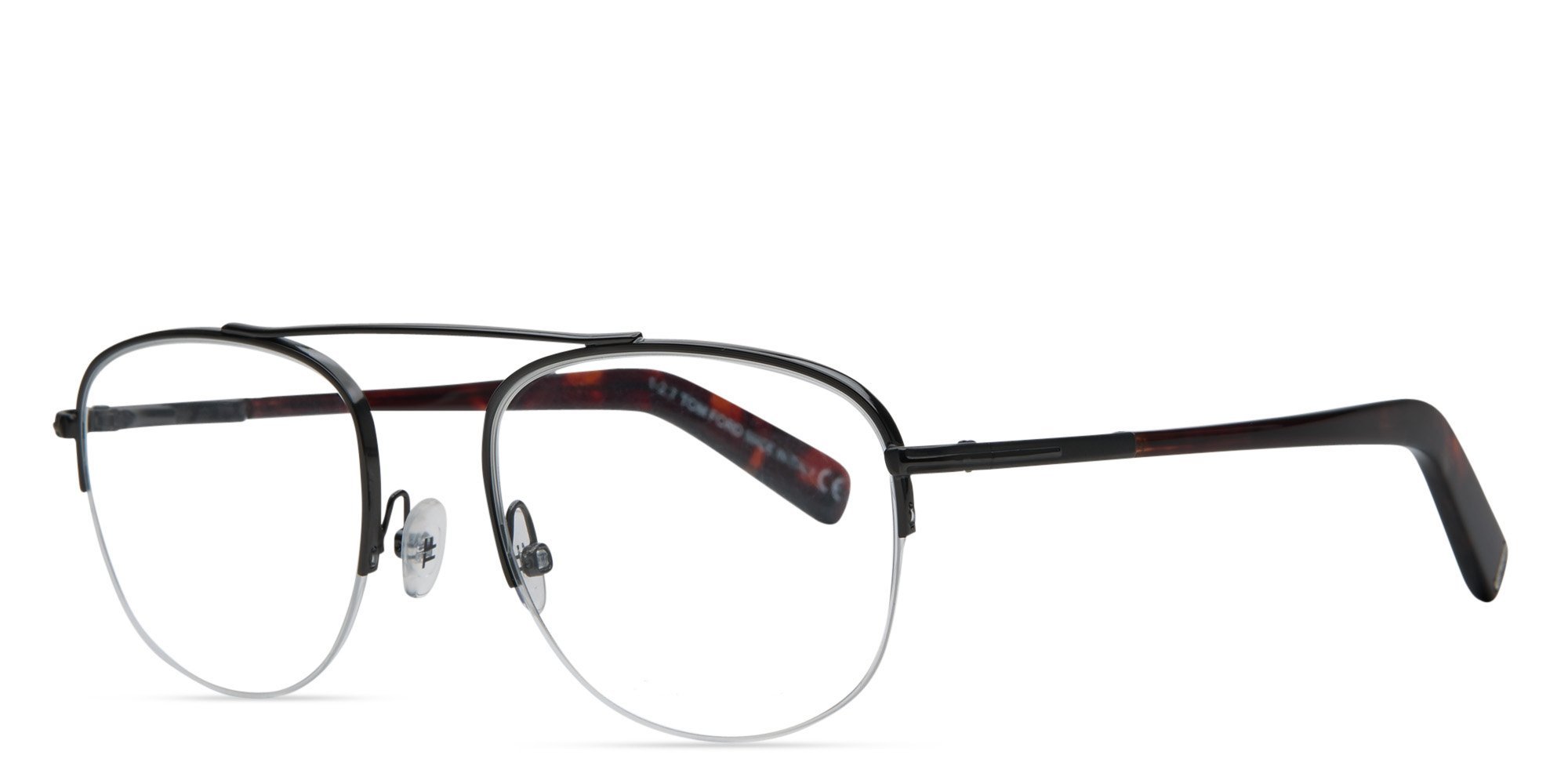 Look sharp with Tom Ford FT5450 eyeglasses. The lightweight semi rimless metal frames are noncorrosive and stress resistant for extreme durability. Skull temples that widen at the tips offer a secure and comfortable fit. Adjustable nose pads ensure that the frames stay precisely where you put them. These rectangular Tom Ford eyeglasses sharpen the features of round and oval faces. Enjoy cutting edge style with these delicate browline eyeglasses.