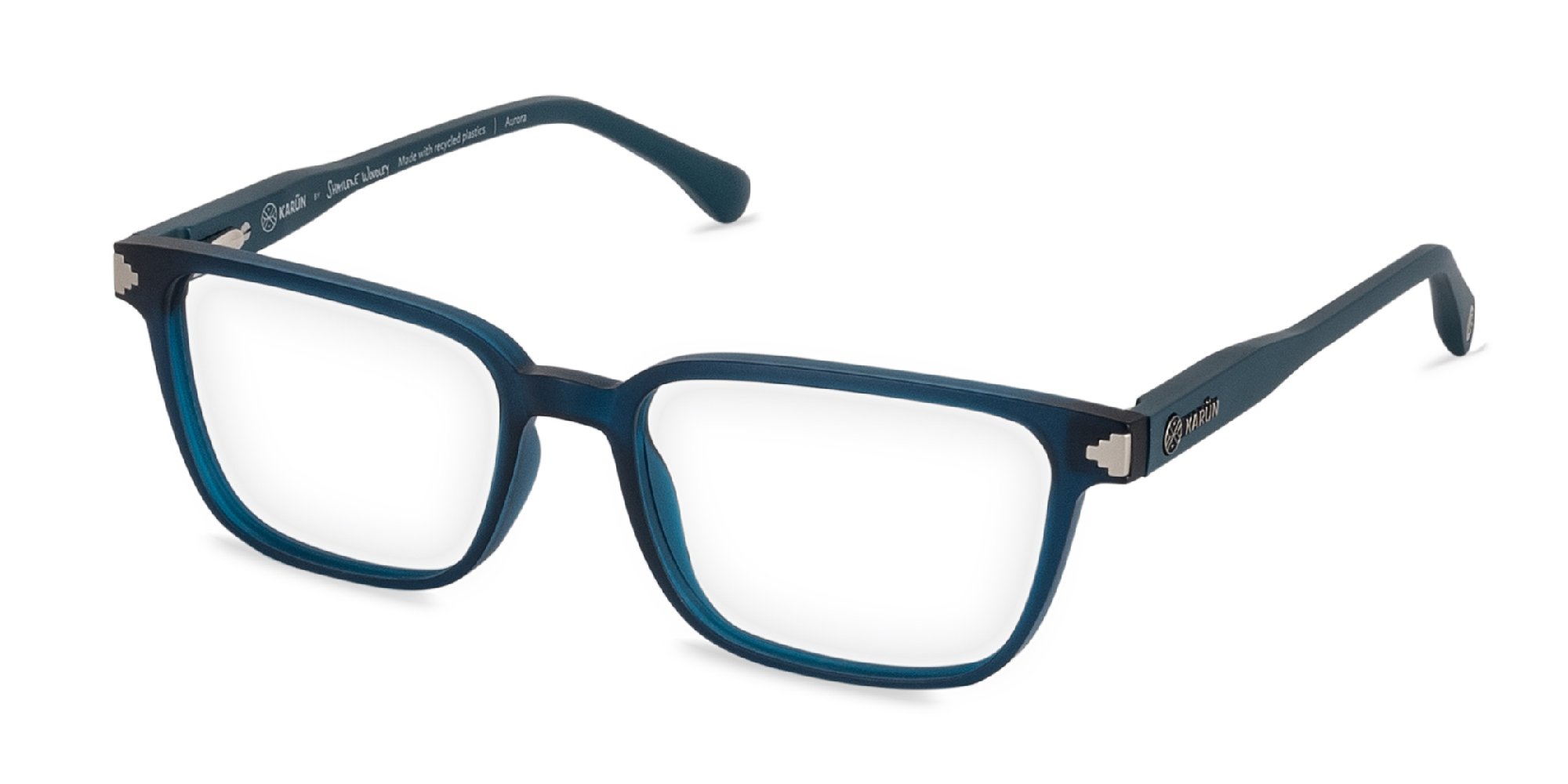 For flexible sturdy frames, try the Aurora prescription eyeglasses by Karün. This classy, formal silhouette includes rectangular lenses that fit oval and round face shapes. Made with recycled polycarbonate, a type of plastic that provides a semi-transparent look to the Karün frames, these full rim eyeglasses gently hug your face for a secure and flattering fit. Developed by Karün in association with Shailene Woodley, these frames provide a real sustainable fashion statement.