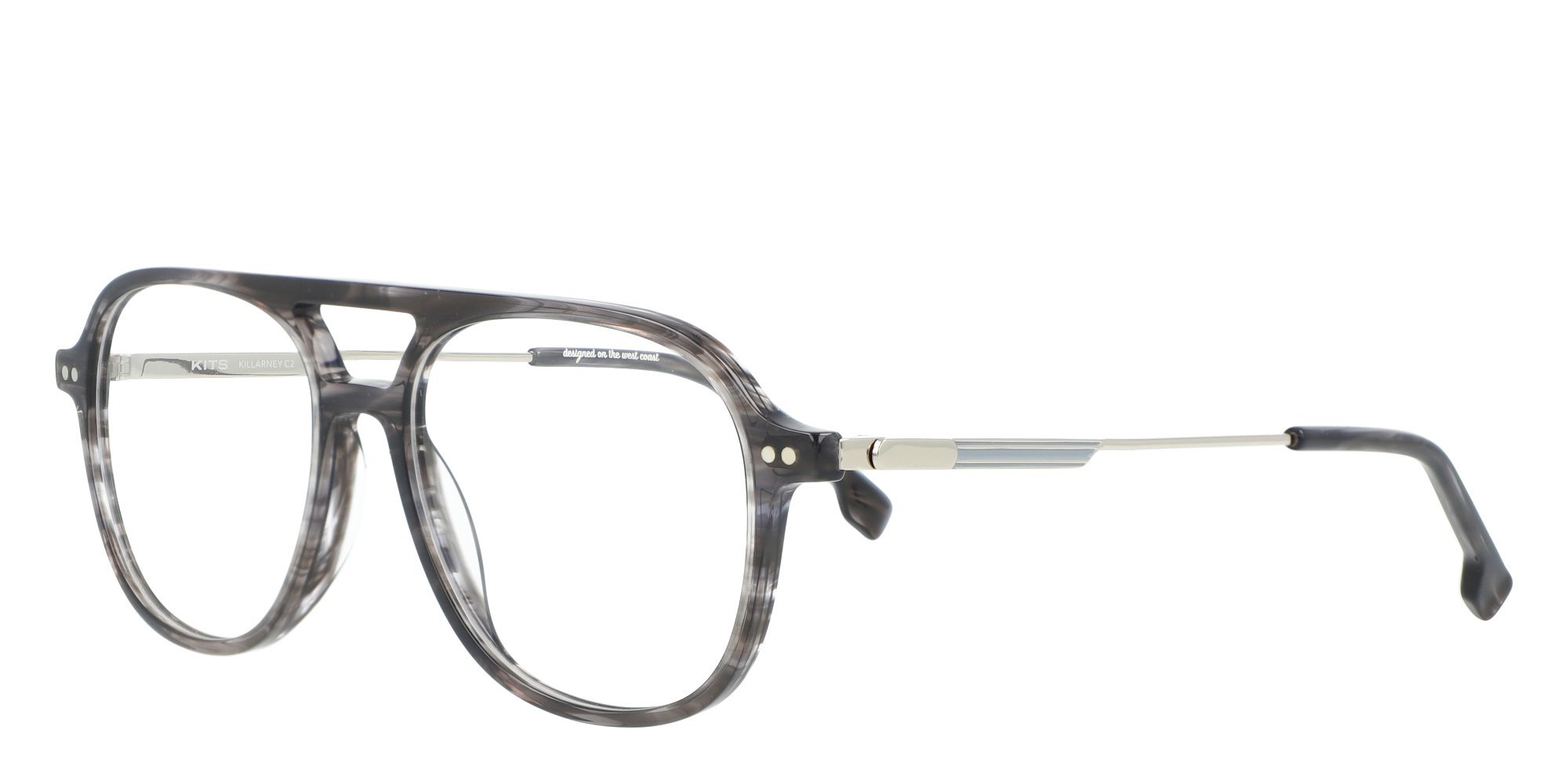 KITS takes a classic silhouette to new heights in the vintage inspired Killarney eyeglasses. The audacious aviator style frames are made in a lightweight material thats sturdy enough to take on the most active lifestyle. The sleek metal temples curve inward gently for added stability behind the ears. Join the geek chic revolution wearing these retro leaning Killarney glasses from KITS.