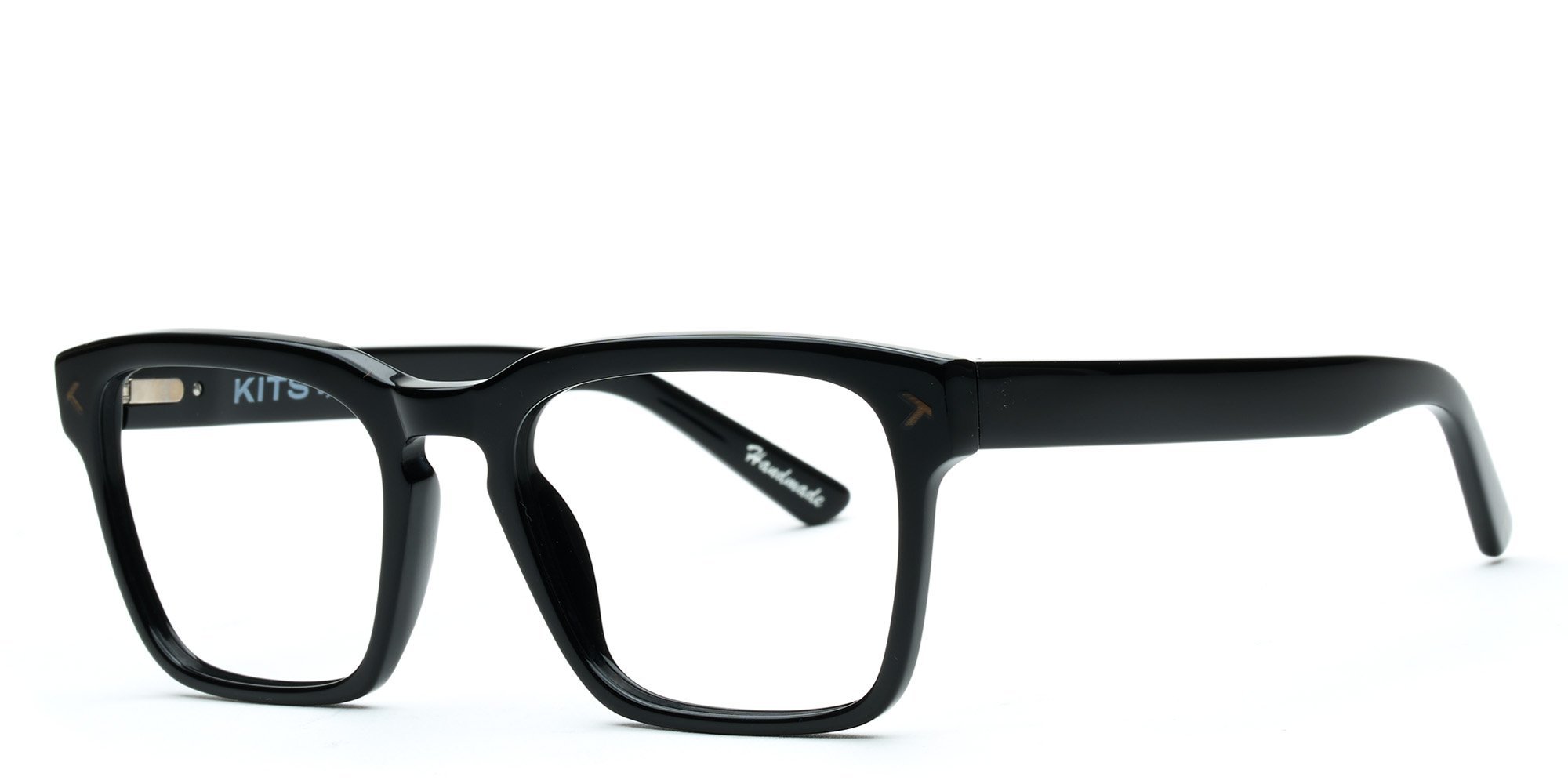 In the vintage inspired Elm, KITS offers high quality eyeglasses with retro appeal and plenty of panache. Sturdy paddle temples feature a stylish shark fin shape, with spring hinges for a secure fit. Soft, rounded edges give these full rim eyeglasses a wayfarer inspired look, with two round rivets on the end pieces for added appeal. The keyhole style bridge distributes the weight of the glasses comfortably on the face, a nice feature for the wearer with a wider nose. If youre searching for full rim glasses, look no further than the bold Elm glasses by KITS. Please note these frames fit large and are best suited to those with wider faces.