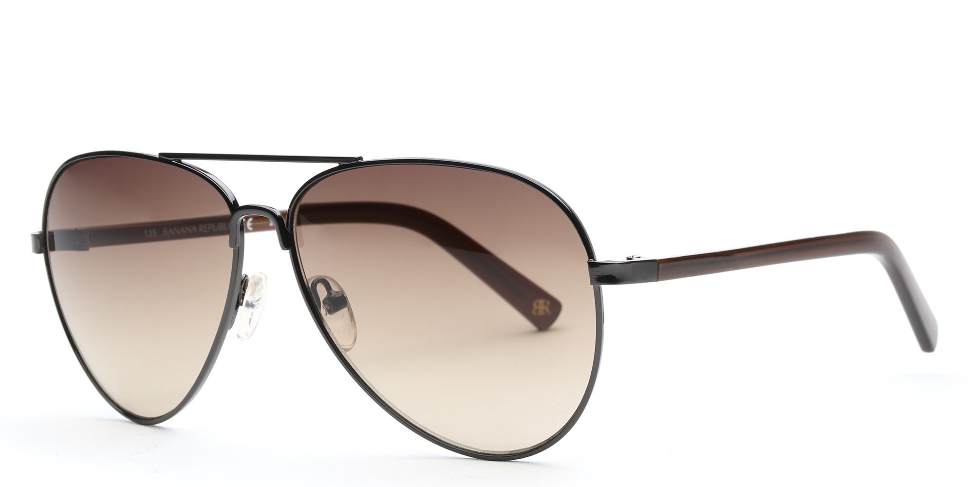Designed for the active wearer, the Leighton sunglasses have unique, no snag nose pads that protect long hair from getting caught in the frame. Constructed with sturdy metal, these frames are malleable and absorb impacts. These metal frame Banana Republic sunglasses touch only the bridge of your nose and sides of your head, for a comfortable and secure fit. Acetate temples provide comfort at the point of contact, and are curved at the tips to prevent the sunglasses from slipping.