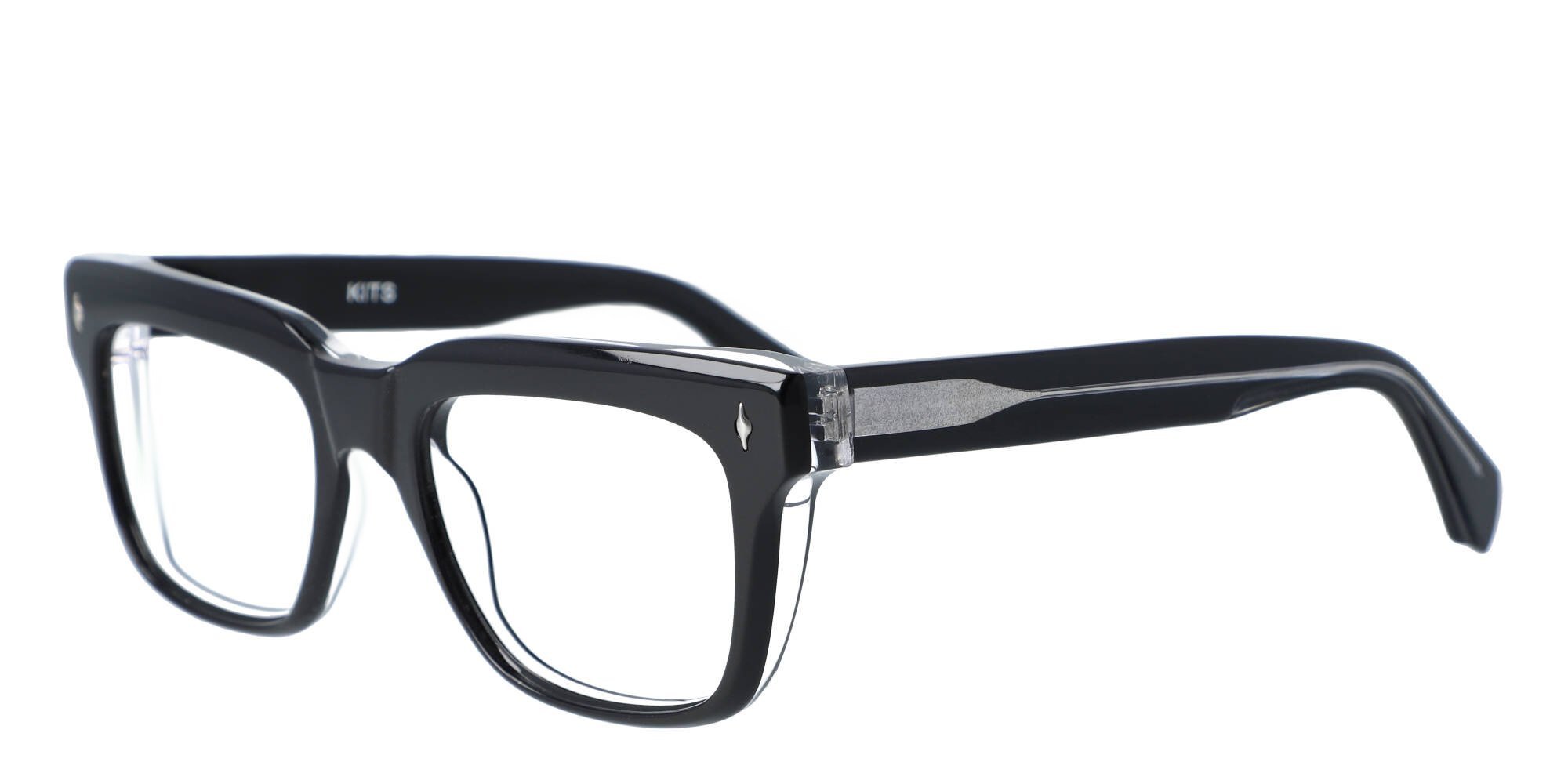 The Dunsmuir eyeglasses from KITS make a winning choice for the wearer who appreciates the combination of contemporary design and classic style. The ful -rim rectangular frames are crafted from lustrous acetate, a lightweight material valued for its durability and strength. The sturdy saddle bridge and square endpoints lend a retro feel to these fashionable glasses. Shark fin temples are gently curved for stability and feature a single metal rivet detail at the ends. Showcase your distinctive tastes when you step out wearing these Dunsmuir glasses from KITS. Please note these frames fit large and are best suited to those with wider faces.