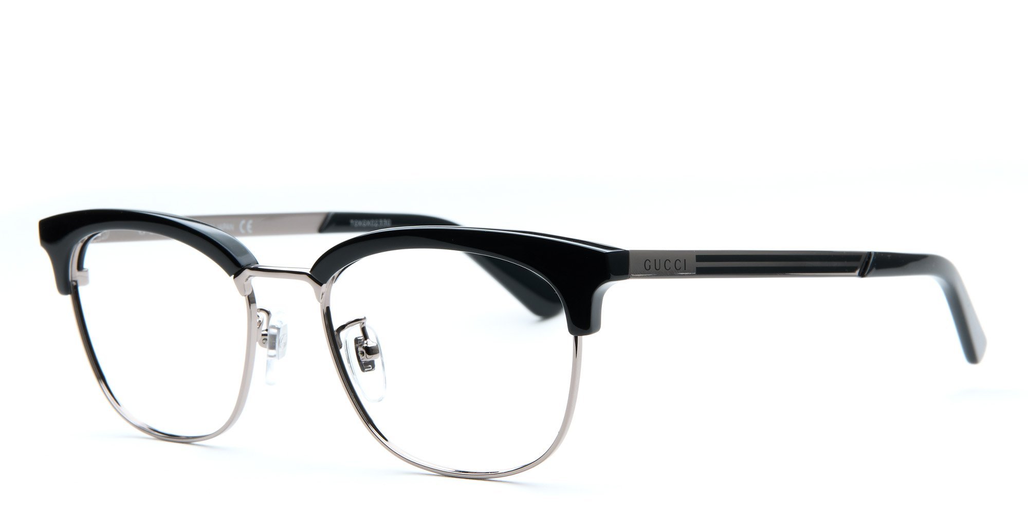 Gucci GG0698OA eyeglasses speak to the wearer who enjoys a vintage look. Pairing 50s-inspired lines and impeccable detailing, Gucci achieves the same luxurious design standards in these glasses as those that have placed this celebrated design house at the forefront of the fashion world for over a century. The metal full rims are strong and durable, and the Clubmaster style browline adds visual heft and appeal. Embrace nostalgia and look smart in these bold Gucci eyeglasses, available in an array of finishes, with Gucci branding at each temple.