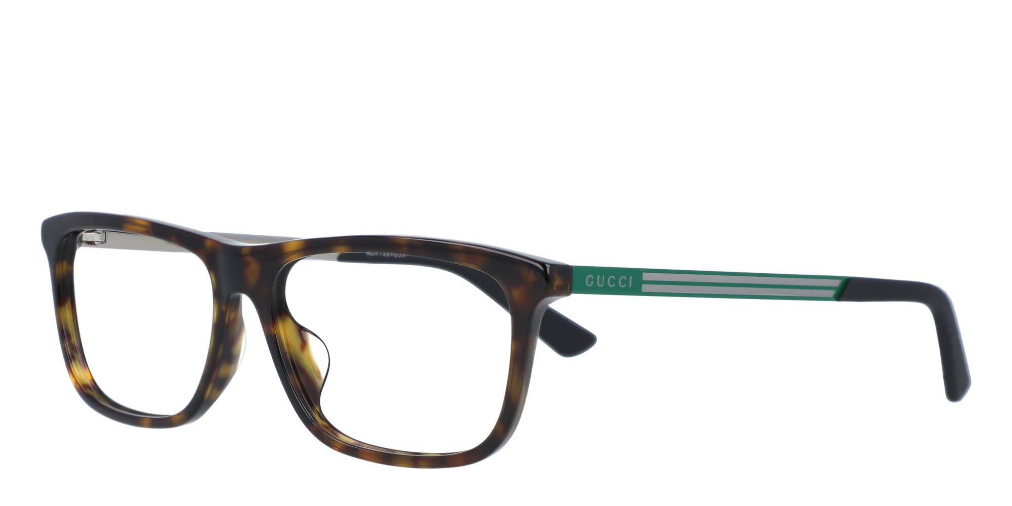 Make your mark in the GG0696OA eyeglasses from Gucci. Crafted in Italy, the bold full rims are distinctive and of exceptional quality. These versatile full rim glasses are bold, yet graceful and classic.The Gucci stripes and name at the temple mark you as a sophisticated trendsetter. If you appreciate well fitting fashion at once innovative and classic, reach for the GG0696OA glasses from Gucci.