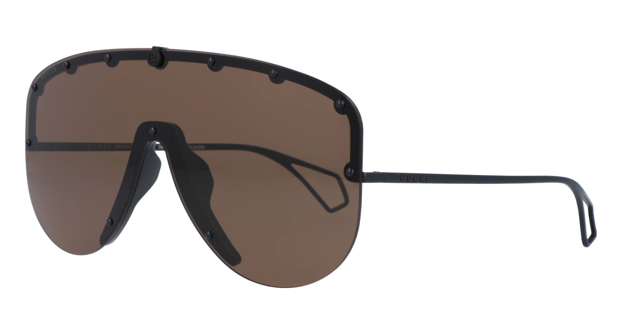 Enjoy a renewed sense of confidence wearing the Gucci GG0667S sunglasses. The unusual aviator frames feature shield style rims crafted in lightweight metal. The metal temples wrap around to the endpoints, and showcase the Gucci signature for couture appeal. Never go unnoticed in these daring sunglasses from Gucci.