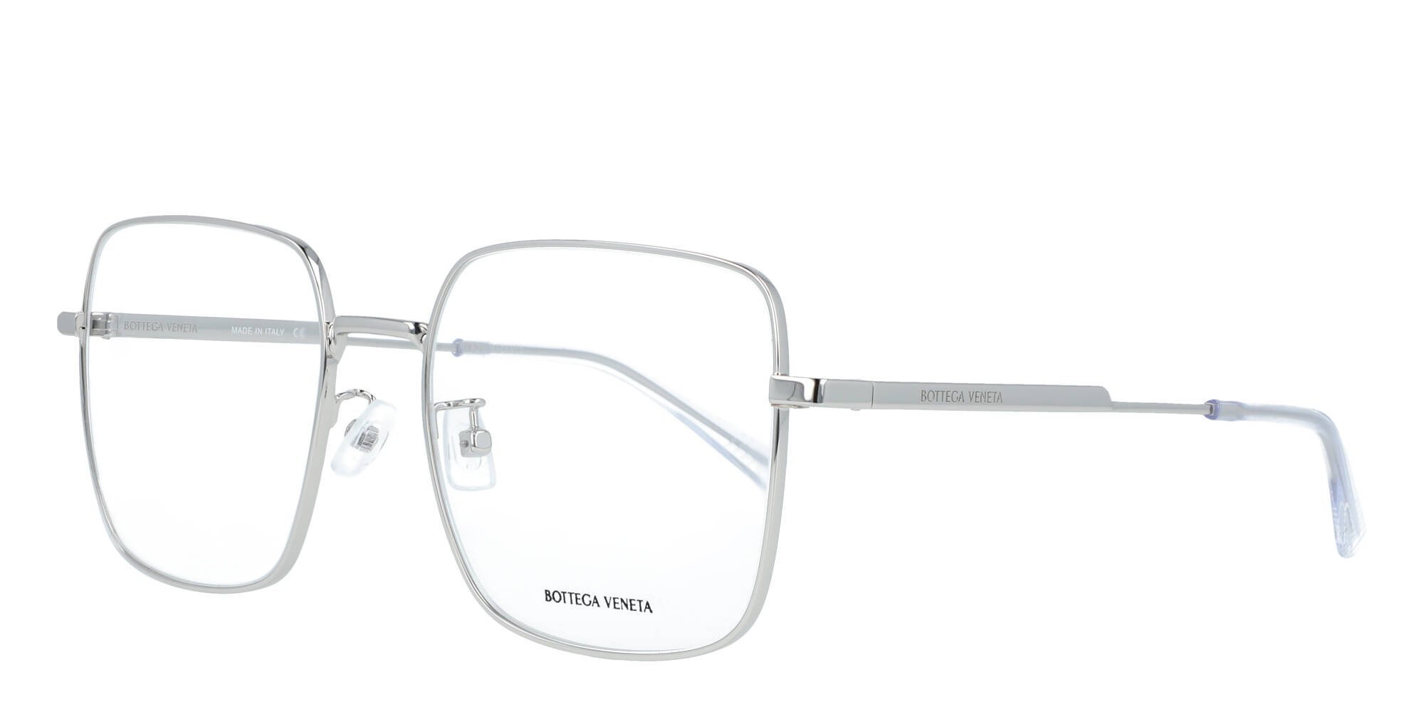 Dance to the beat of your own drum in a pair of Bottega Veneta BV1110O eyeglasses. These eye catching glasses provide a pleasant 1970s throwback aesthetic. The square frames complement round or oval faces, and the thin full rims and a single bridge provide effortless elegance. The noncorrosive and stress-resistant metal means you can rely on these eyeglasses to handle everyday use for the long term, and their lightweight, barely there feel is exceptionally comfortable. Flaunt an iconic aesthetic that speaks for itself with eyeglasses from Bottega Veneta.