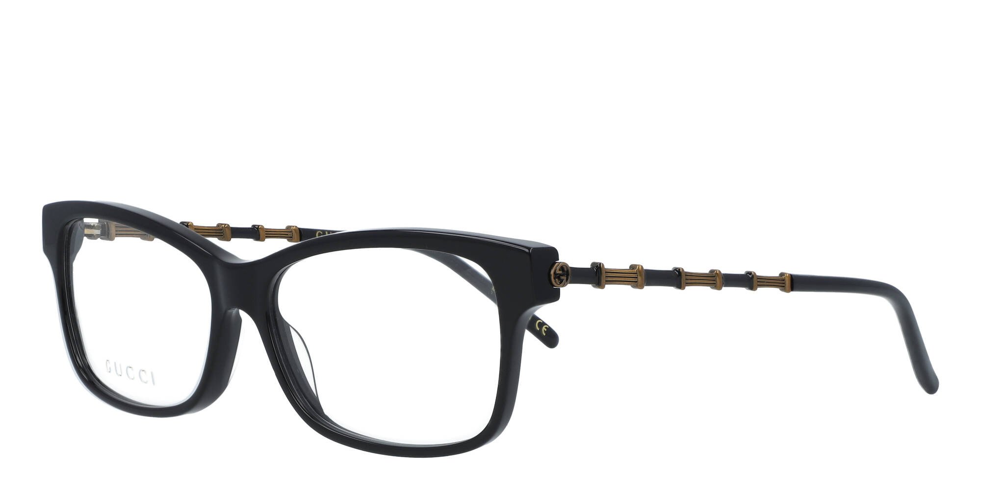 The Gucci GG0657O eyeglasses offer the wearer who covets couture fashion a fresh, new look. With a slightly arched browline and rounded full rims, these rectangular frames will flatter the modern fashionista. The creative temples feature an unusual architectural pattern for multi dimensional appeal, and the interlocking G logo at the hinge adds designer flair. The acetate and metal construction is sturdy, and the easy to repair conventional hinges are durable. Experience luxurious comfort paired with signature style wearing these Gucci eyeglasses.