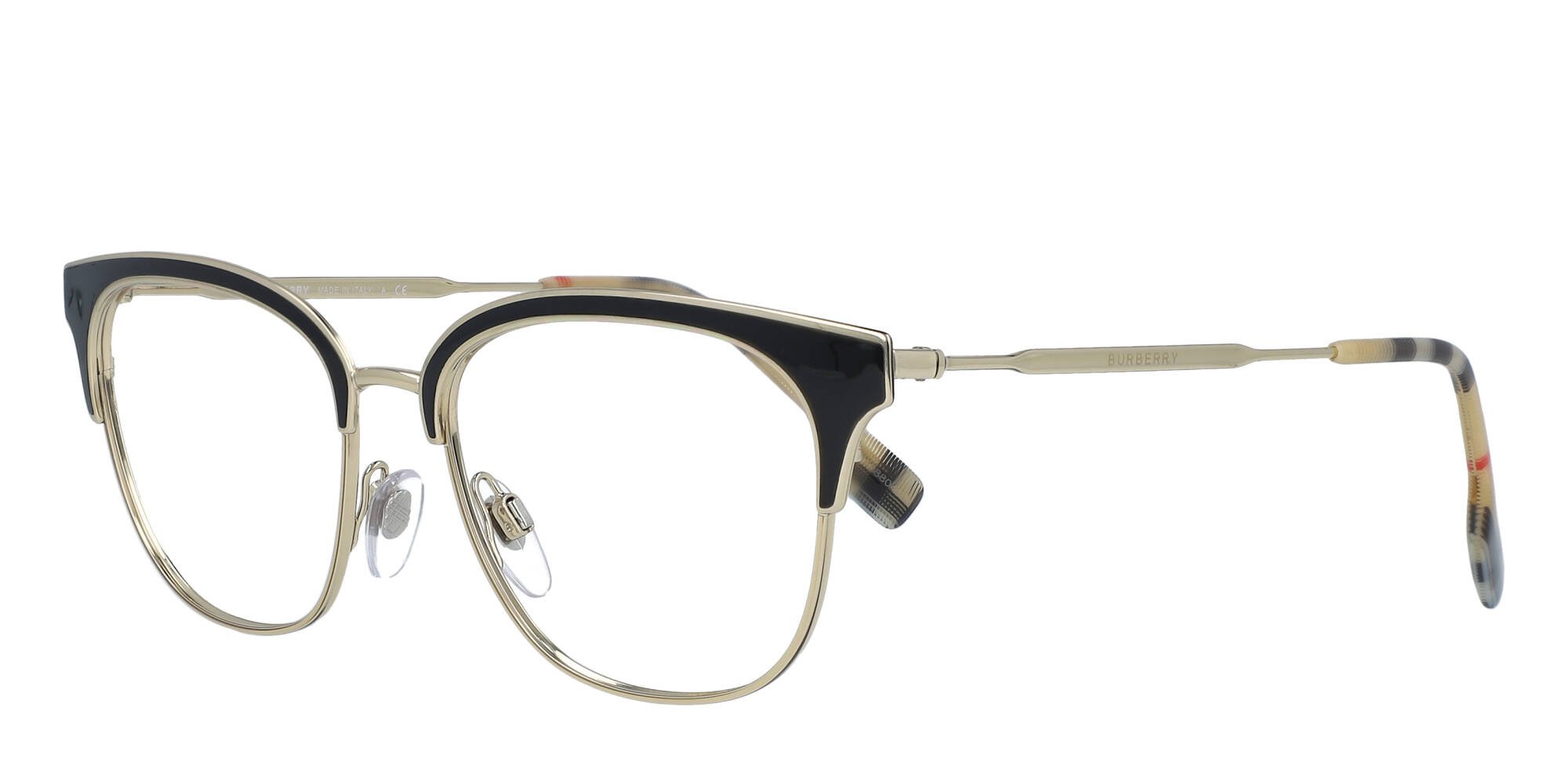 Showcase your dynamic persona with Burberry BE1334 eyeglasses. The bold browline draws attention upward, and the square frames flatter round or oval faces. The sturdy metal frames of these Burberry eyeglasses resist stress and corrosion, so they will be a good looking part of your wardrobe for years. The brand's name and signature pattern at the temples declare your affinity for style.