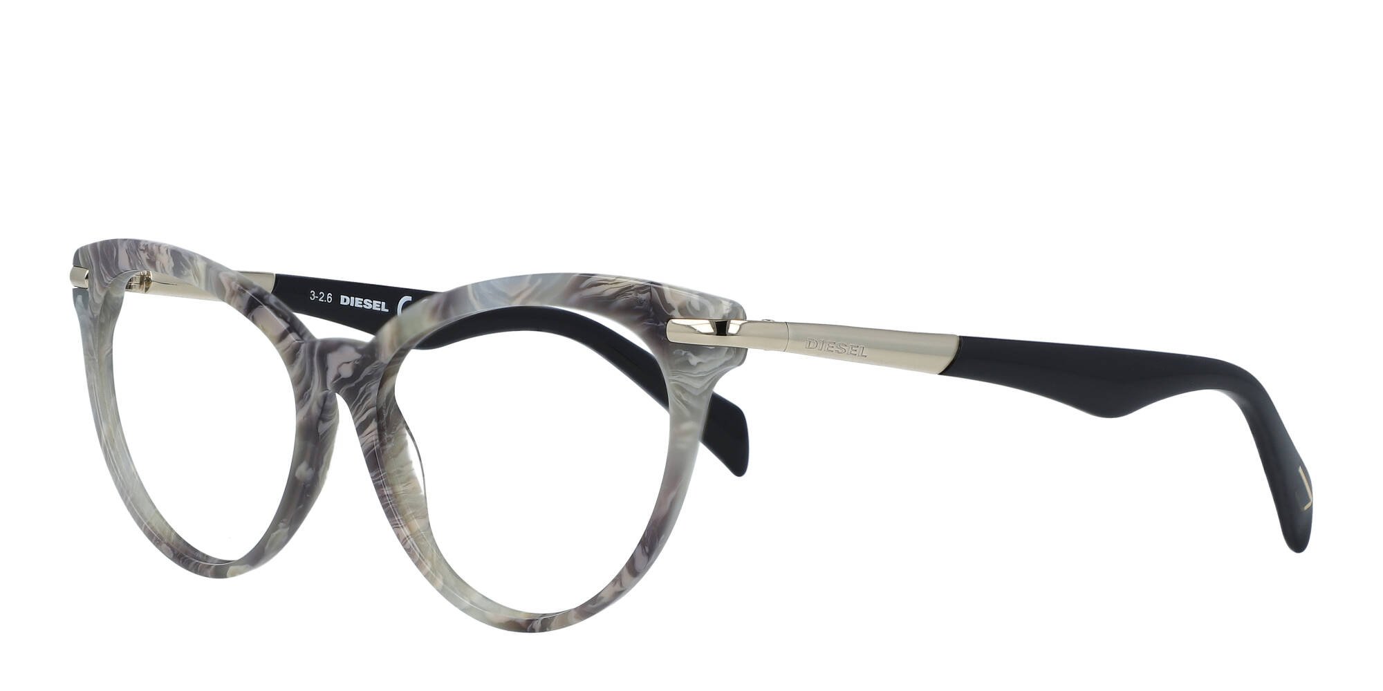 The Diesel DL5193 eyeglasses offer sophisticated style and a comfortable fit. These cat eye frames boast a softly arched browline and elongated, squared off endpoints for an elevated yet playful look. A pair of rivets at each endpoint adds interest to the streamlined profile, and the signature at the metal hinge adds designer flair. Crafted in lightweight, hypoallergenic acetate, the DL5193 glasses from Diesel feature flexible wirecore temples that adjust easily for a custom fit.