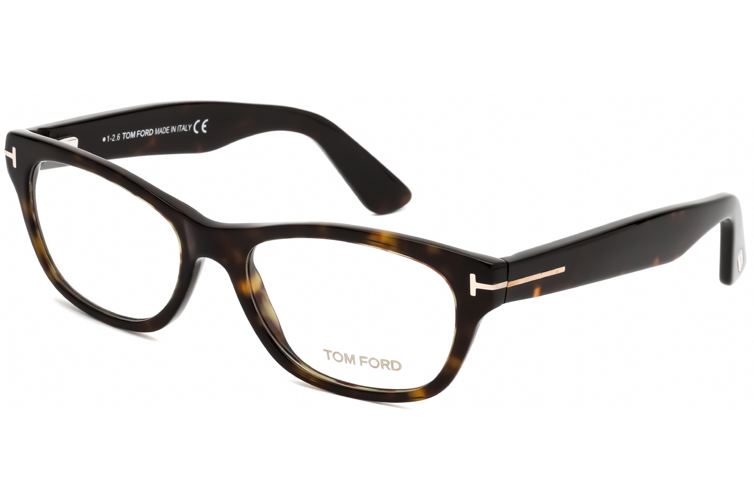 The Tom Ford FT5425 eyeglasses offer the woman with adventurous style sensibilities a fashion forward look. These full rim frames boast a browline that plunges from the endpoints to the bridge for an eye catching cat eye silhouette. The chunky shark fin temples provide retro chic appeal, and the classic T at the hinge offers designer flair. The FT5425 glasses from Tom Ford come in lightweight but sturdy performance acetate for comfort and durability, and the flexible wirecore temples adjust easily for a custom fit.