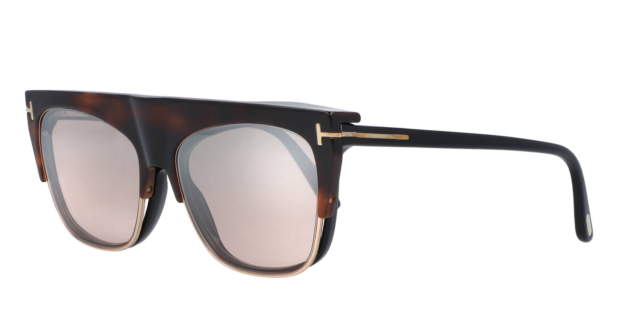 Treat yourself to fun and feminine eyeglasses when you opt for the FT5690 from Tom Ford. These full rim frames are made in hypoallergenic acetate, a lustrous plant based plastic engineered for comfort and durability. The skull temples curve inward gently for stability, and feature a bold metallic accent near the brow end for added appeal. A saddle bridge distributes the weight of the frames evenly and adds a retro look. Available with sunglass clip-ons, these Tom Ford FT5690 glasses are sure to complement your unique style.