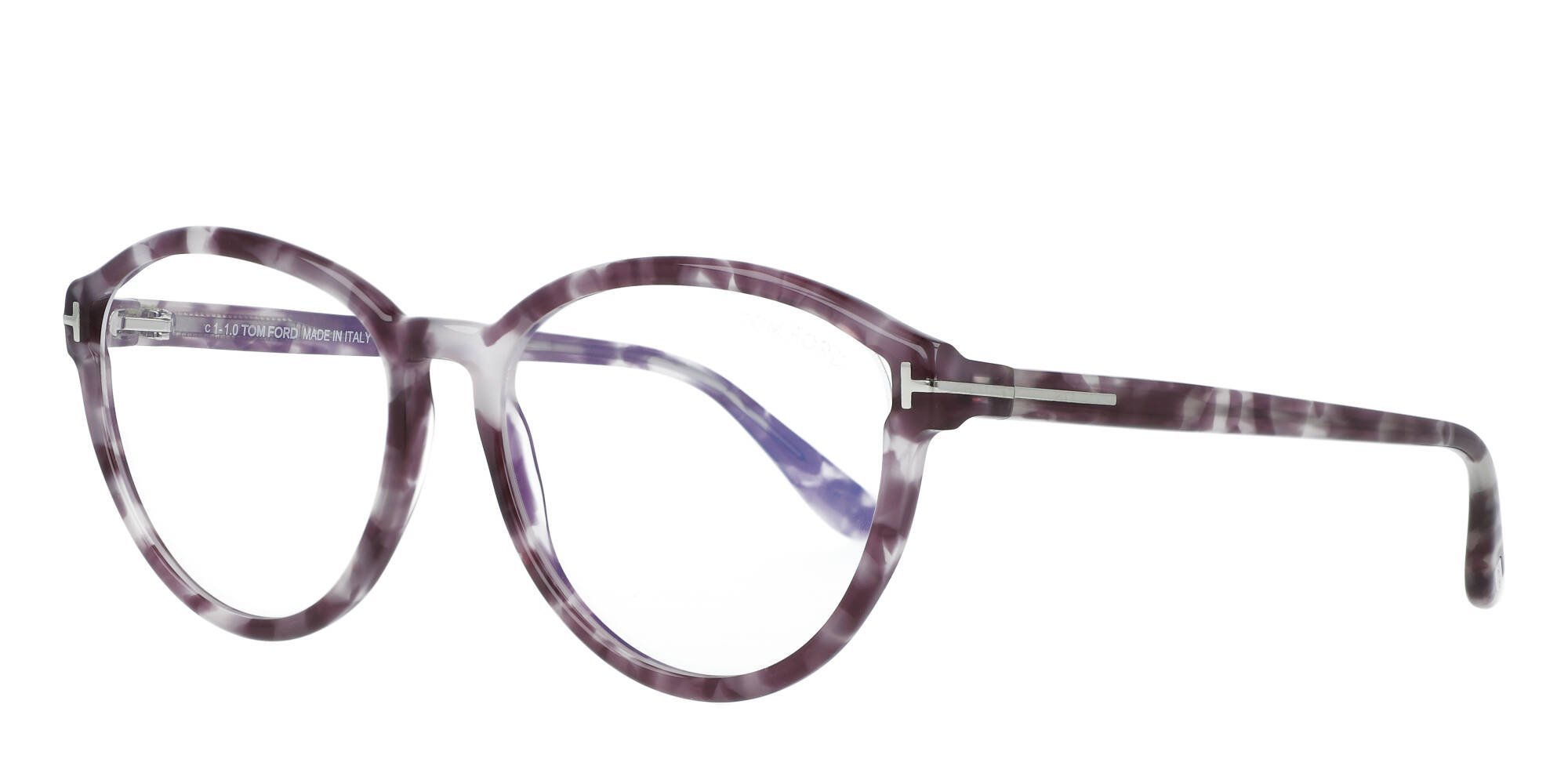 The Tom Ford FT5706 eyeglasses promise a classic look for the woman with refined tastes. With an arching browline and rounded full rims, these cat eye frames add vintage inspired appeal to any wardrobe. Tom Ford's signature T features prominently on the wirecore temples for designer flair, and the ergonomic temple tips promise a secure fit. The lightweight acetate construction is durable and hypoallergenic for long years of comfortable wear, and the easy to repair conventional hinges are sturdy. Showcase your preference for couture eyewear in these designer eyeglasses from Tom Ford.