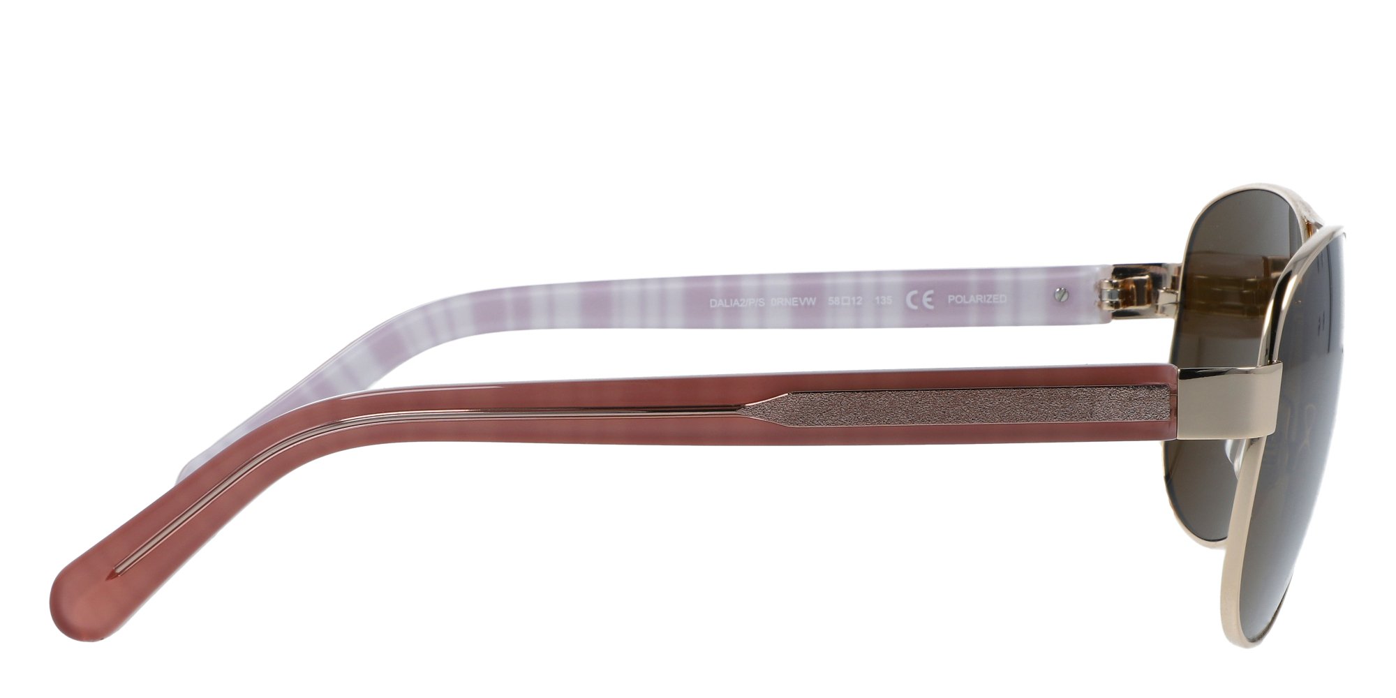 Express your playful fashion aesthetic wearing these Kate Spade Dalia 2/P/S sunglasses. Vibrant contrast patterns peek from the temple interiors on these cool aviator-style frames. The sunglasses are finely crafted of metal at the rims and acetate at the temples. The result is lightweight and durable sunglasses with a mix of metallic and glossy finishes. The full rim frames boast the aviator’s classic double bridge, and the Kate Spade logo brightens the temples. The lively style and exquisite construction of these Dalia sunglasses live up to the Kate Spade name.