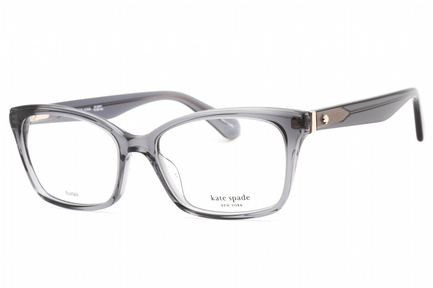The classic rectangular Jeri eyeglasses from Kate Spade get a refresh with modern style details. Lustrous, lightweight acetate makes these glasses durable and comfortable to wear. And the signature Spade logo at the temple ends adds elegance to these feminine glasses. Show your penchant for refined style when you step out in the Jeri by Kate Spade.