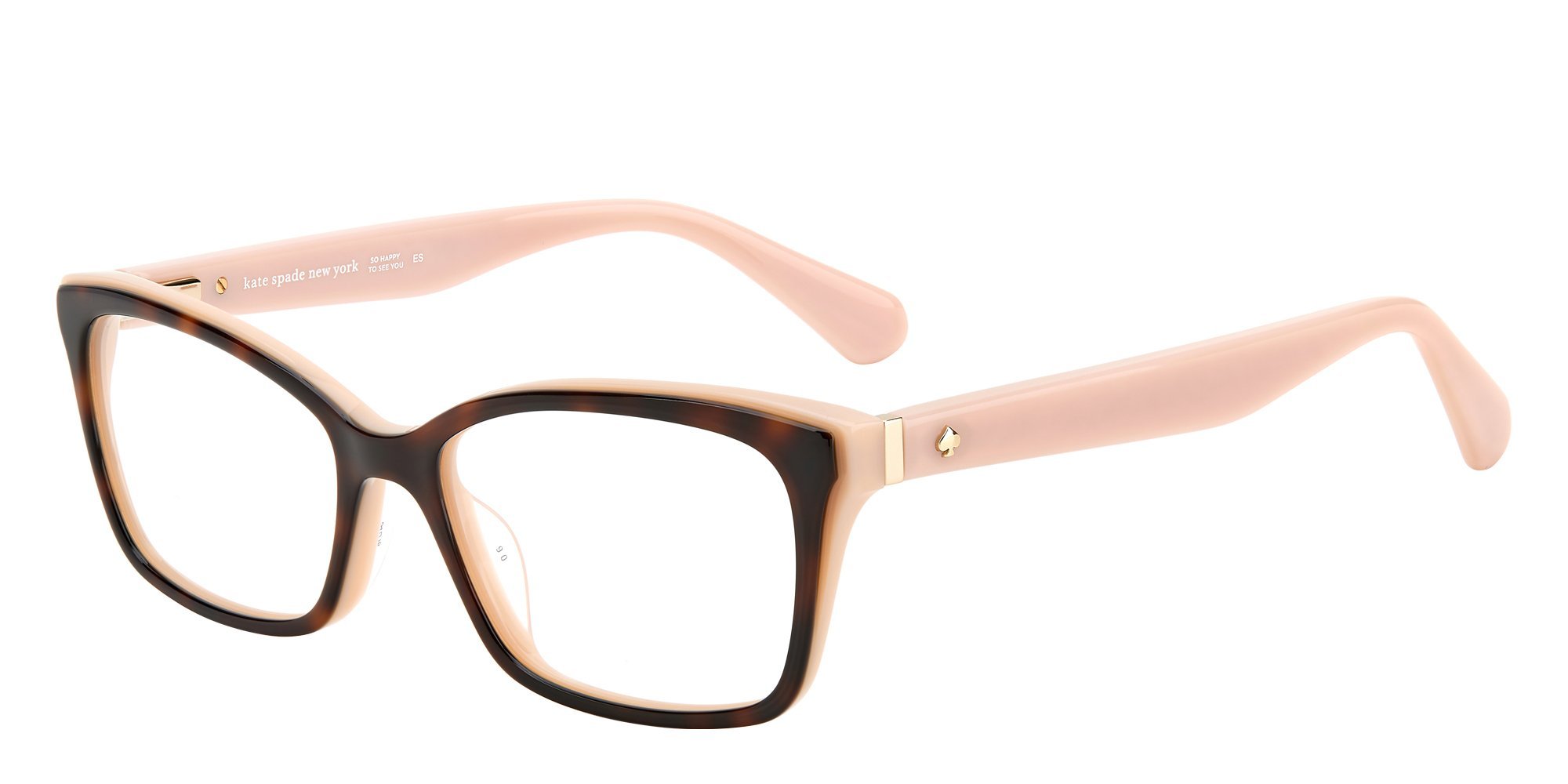 The classic rectangular Jeri eyeglasses from Kate Spade get a refresh with modern style details. Lustrous, lightweight acetate makes these glasses durable and comfortable to wear. And the signature Spade logo at the temple ends adds elegance to these feminine glasses. Show your penchant for refined style when you step out in the Jeri by Kate Spade.