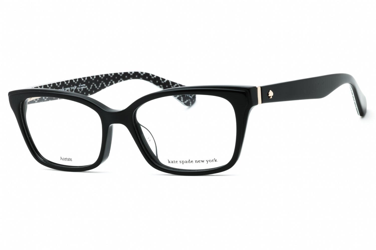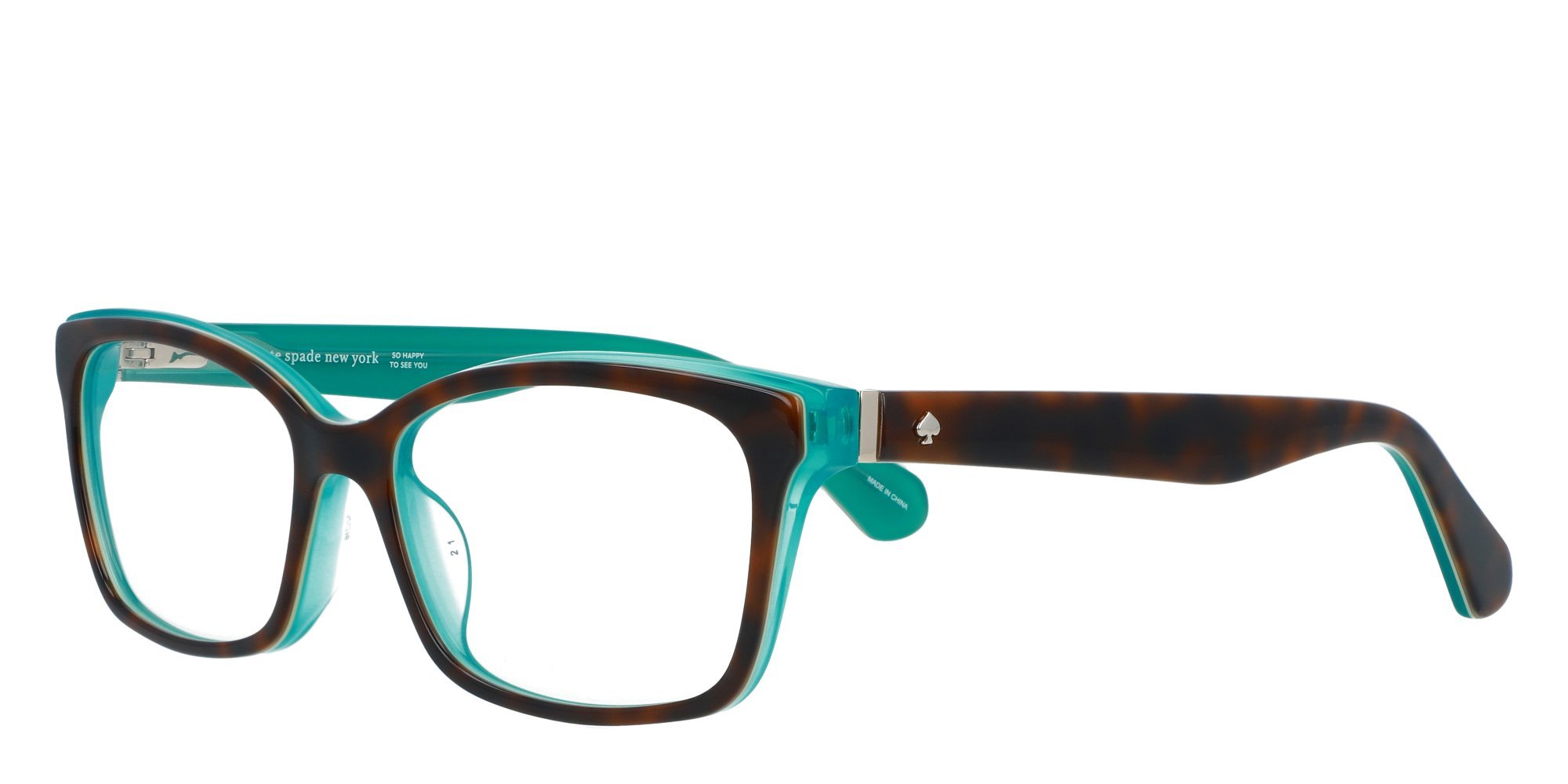 The classic rectangular Jeri eyeglasses from Kate Spade get a refresh with modern style details. Lustrous, lightweight acetate makes these glasses durable and comfortable to wear. And the signature Spade logo at the temple ends adds elegance to these feminine glasses. Show your penchant for refined style when you step out in the Jeri by Kate Spade.