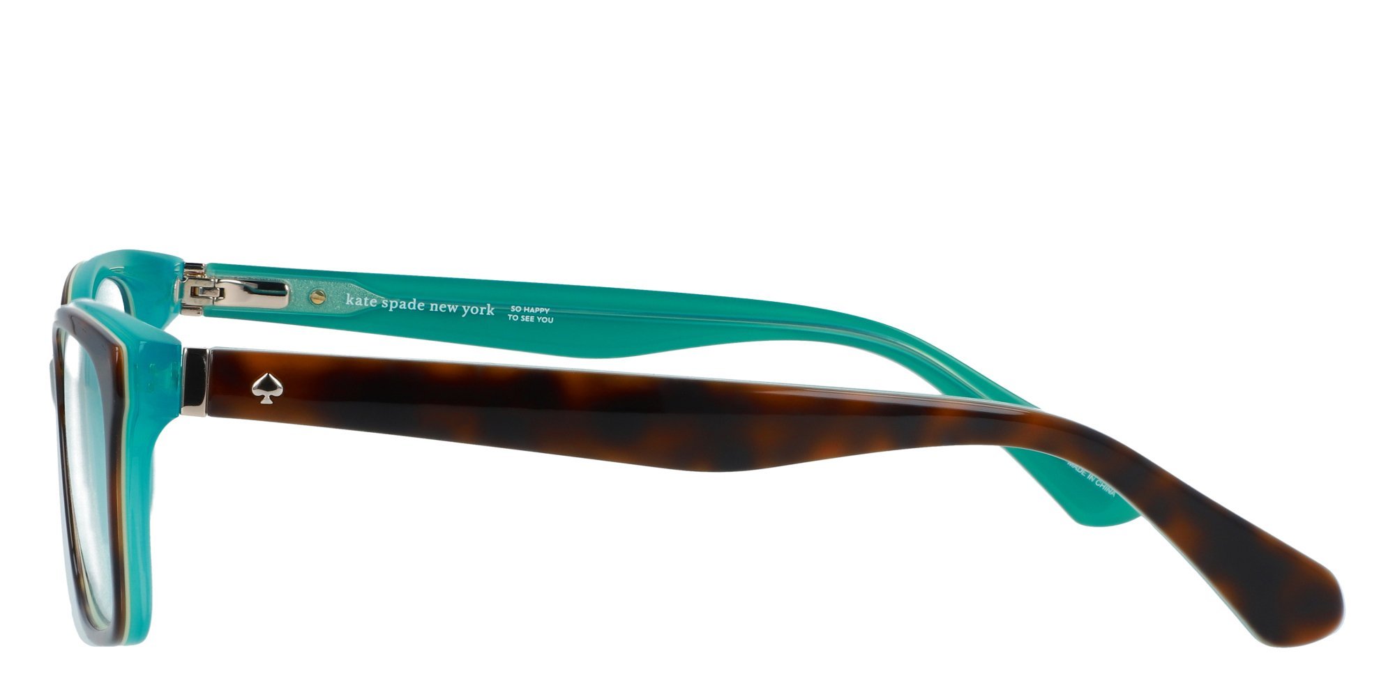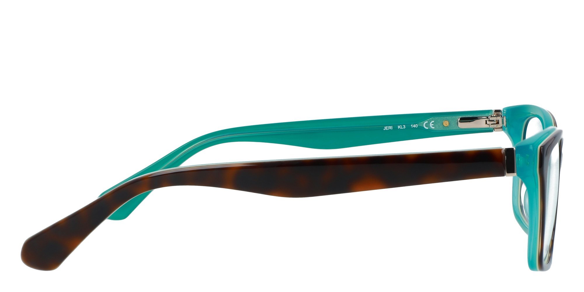 The classic rectangular Jeri eyeglasses from Kate Spade get a refresh with modern style details. Lustrous, lightweight acetate makes these glasses durable and comfortable to wear. And the signature Spade logo at the temple ends adds elegance to these feminine glasses. Show your penchant for refined style when you step out in the Jeri by Kate Spade.