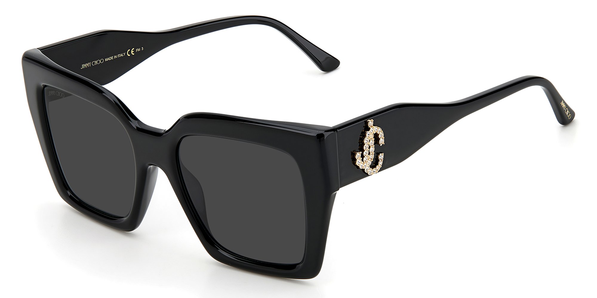 Animal prints, glittery finishes and luxurious Swarovski crystals: the Jimmy Choo JC World eyewear collection incorporates the brands iconic style codes into a range of ultra-glamorous frames, flaunting the JC logo on one temple for an of-the-moment asymmetric look. Boasting a bold rectangular silhouette with wide temples, these statement sunglasses are enhanced with carved front profiles for a lightweight feel.