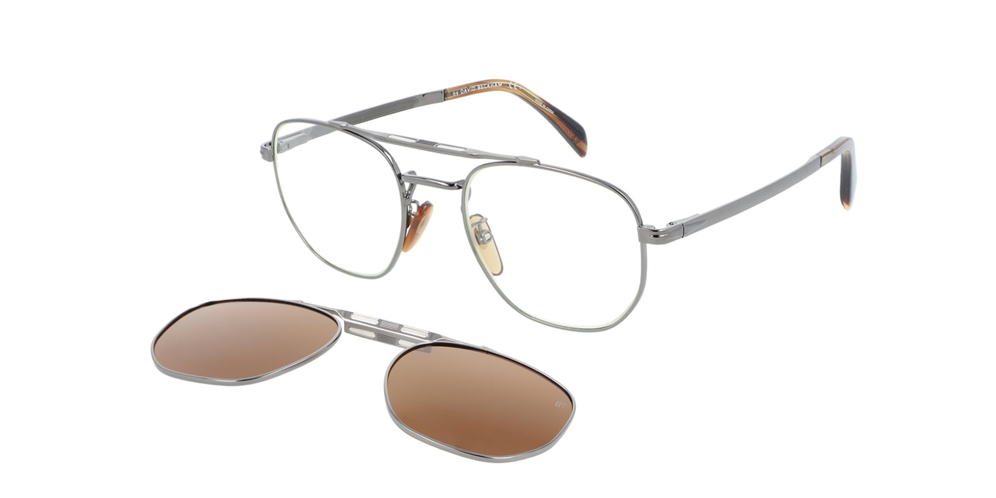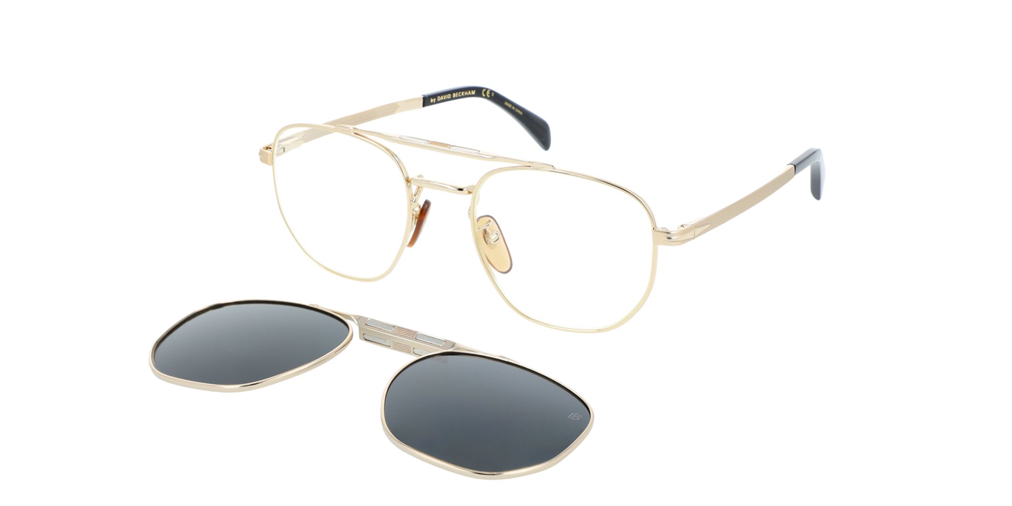 These eyeglasses with clip on sun lenses are the epitome of on-trend English style, with elegance that combines classic shapes and colours with contemporary details such as the David Beckham monogram and the TALISMAN detail at the hinge. The chiselled metal core with the by David Beckham inscription, the lightweight structure, and the comfort offered to voyagers make the DB 1082/G/CS metal eyeglasses with clip-on sun lenses a style icon in a class of their own.