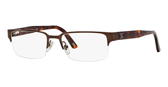 Look sharp with the Versace VE1184 eyeglasses. The lightweight semi rimless metal frames are noncorrosive and stress resistant for extreme durability. Skull temples and spring hinges offer a secure and comfortable fit. Adjustable nose pads ensure that the frames stay precisely where you put them. These rectangular Versace eyeglasses sharpen the features of round and oval faces. Enjoy cutting edge style with these delicate browline eyeglasses.