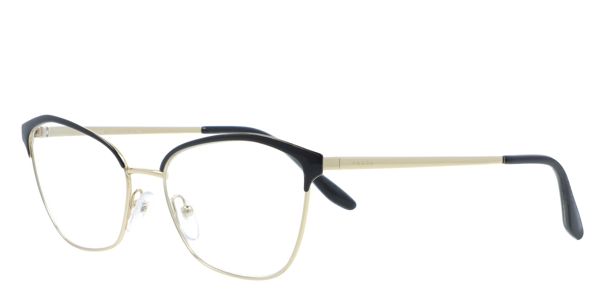 The Prada PR 62XV eyeglasses offer an alluring look for the woman with retro inspired style sensibilities. With a daring split frame profile, pronounced browline, and softly rounded lower rims, these cat eye frames will complement your features without overwhelming them. The petite engraved logo near the hinge adds designer appeal, and the contrasting temple socks promise a comfortable fit behind the ears. Crafted in corrosion resistant metal, these authentic Prada glasses come with easy to repair conventional hinges for added durability.