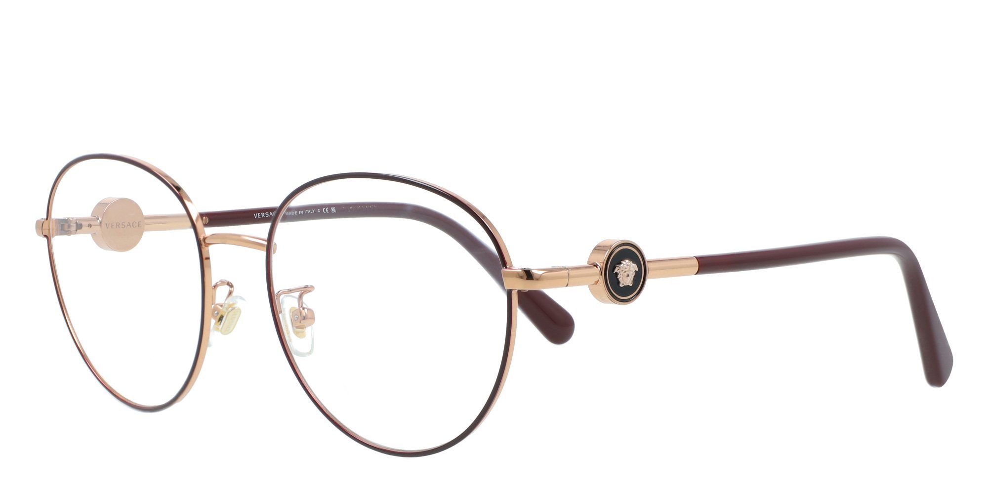 Add a bit of drama to your look wearing the VE1273D eyeglasses. This bold, modern take on round frames will flatter square and heart shaped faces. The signature Versace Medusa head appears prominently in medallions at the temples for bold designer appeal. The corrosion-resistant metal construction is lightweight and comfortable, and the temples come with plastic-coated tips that adjust easily for a secure fit behind the ears. Step out and stand out in the VE1273D glasses from Versace.