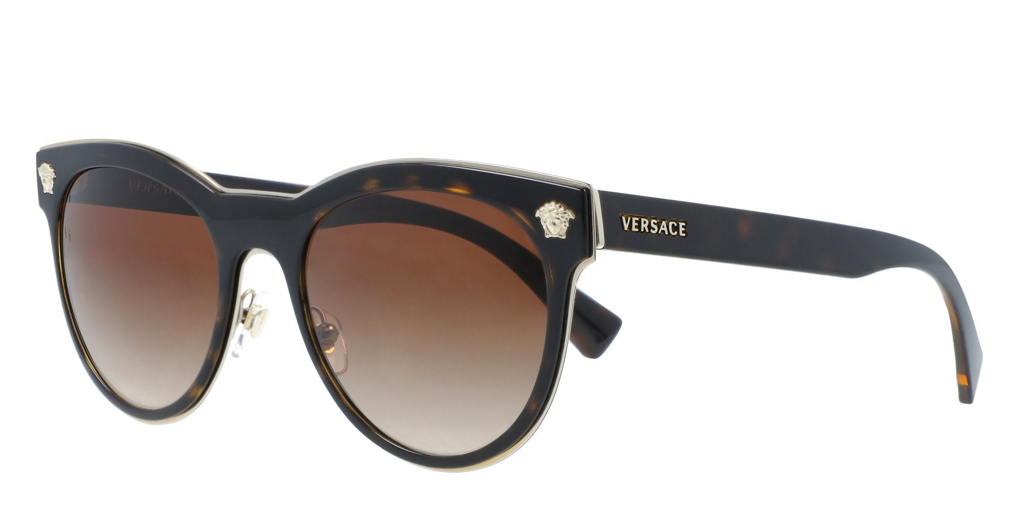 Showcase your audacious fashion sense with Versace VE2198 sunglasses for women. Full-rim metal frames resist corrosion and hold up to stress. Skull temples keep the frames snug, while the nose pads are fully adjustable to achieve a comfortable fit. These phantos-shape Versace sunglasses flatter oval, square, and heart-shaped faces. Accents like the brand name and signature Medusa icons complete an accessory that's undeniably Versace. From your daily commute to roads less traveled, these shades keep your style on point.