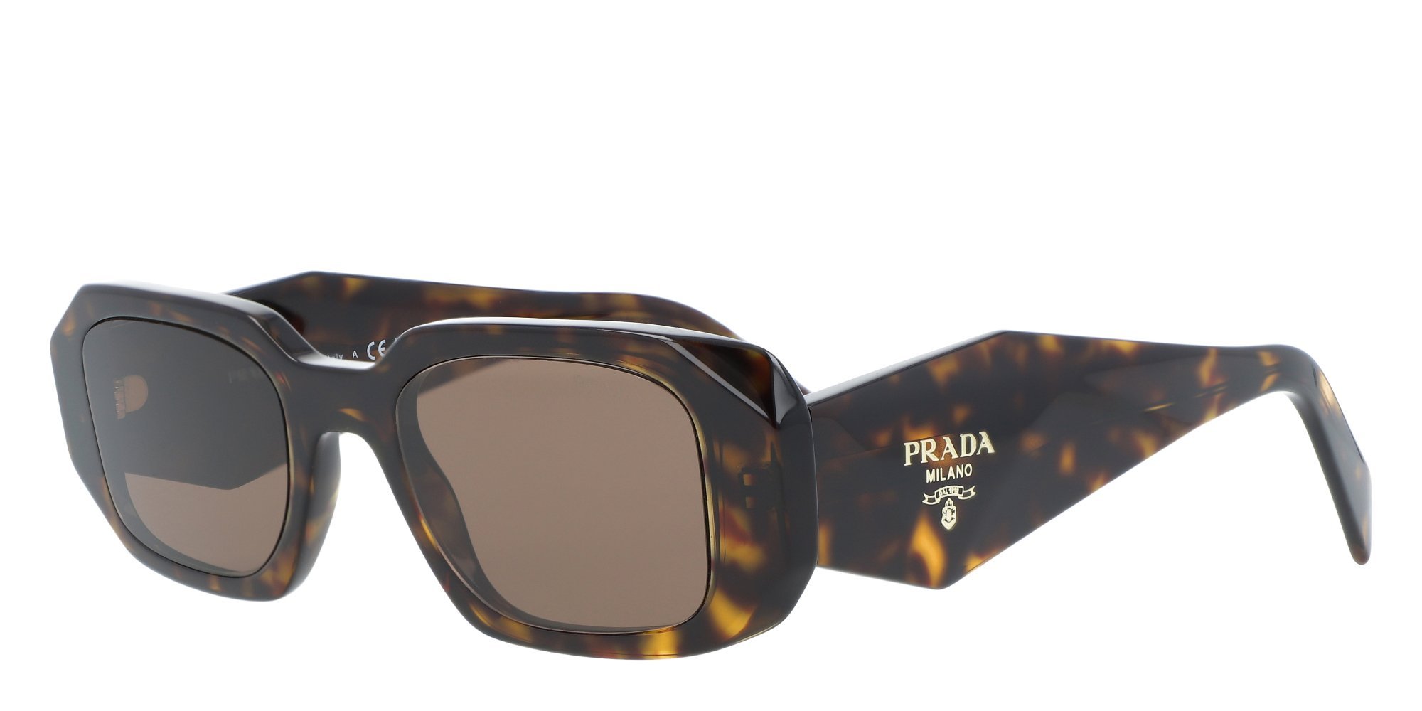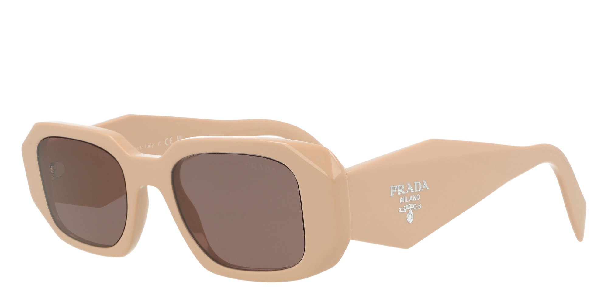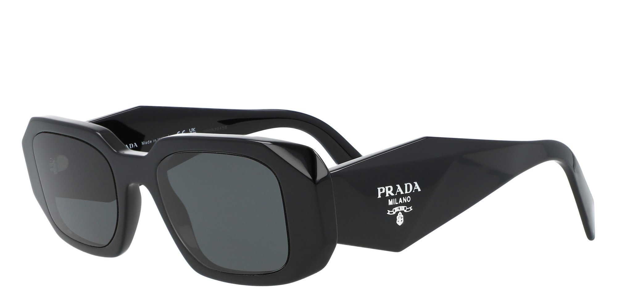 The Prada PR 17WS sunglasses are designed for the woman with sophisticated sensibilities. These rectangular full rim frames are made in lightweight but sturdy acetate, and flaunt an edgy contemporary aesthetic. The bold Prada logo is featured at the beveled geometric temples, adding an extra touch of luxury. The conventional hinge is durable and easy to repair, and the wide endpoints provide superior eye coverage. Make a fashion statement while protecting your eyes from the sun in these daring shades from Prada.