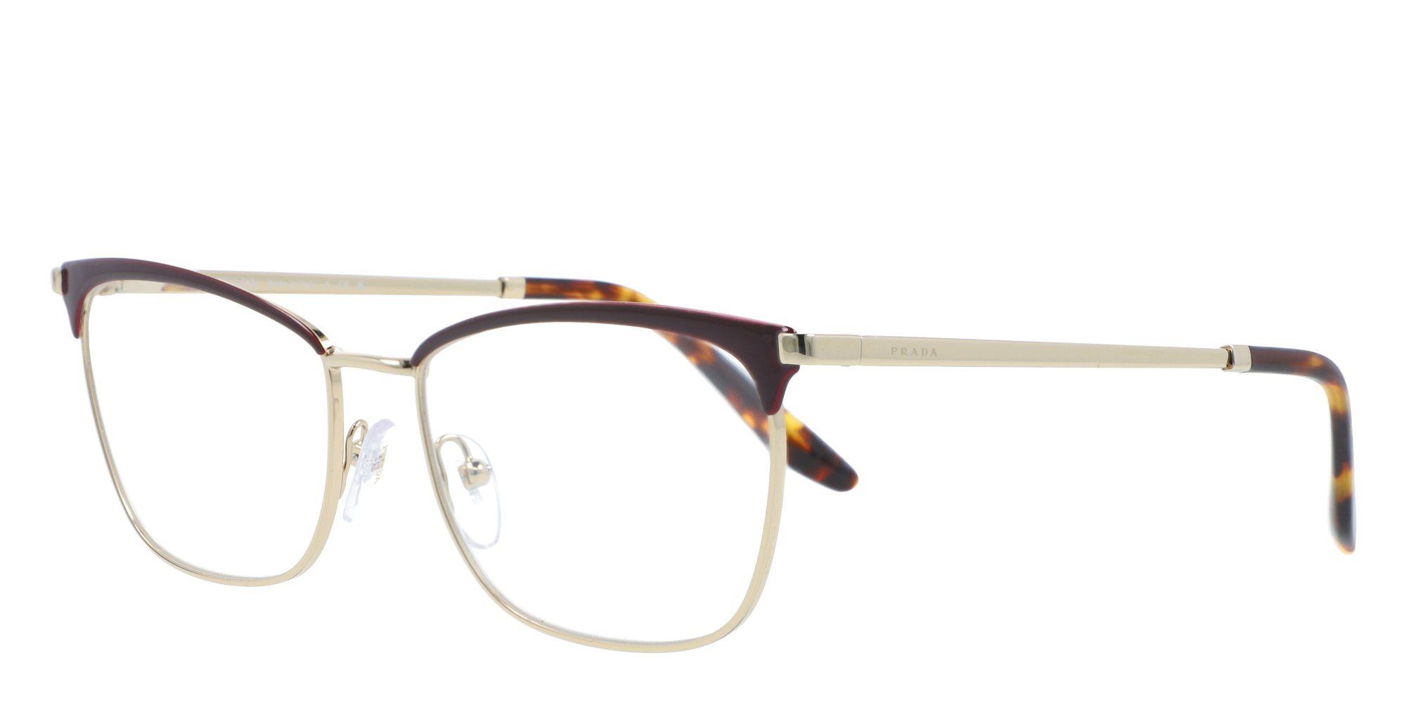 The Prada PR 57WV eyeglasses offer the modern fashionista an alluring new look. In a split frame profile with a pronounced browline and softly upswept wingtips, these vintage inspired rectangular frames recall the classic cat eye style. The lightweight metal construction resists corrosion for extra durability, and the acetate temple socks offer a comfortable fit behind the ears. Elevate your wardrobe wearing the PR 57WV glasses from Prada.