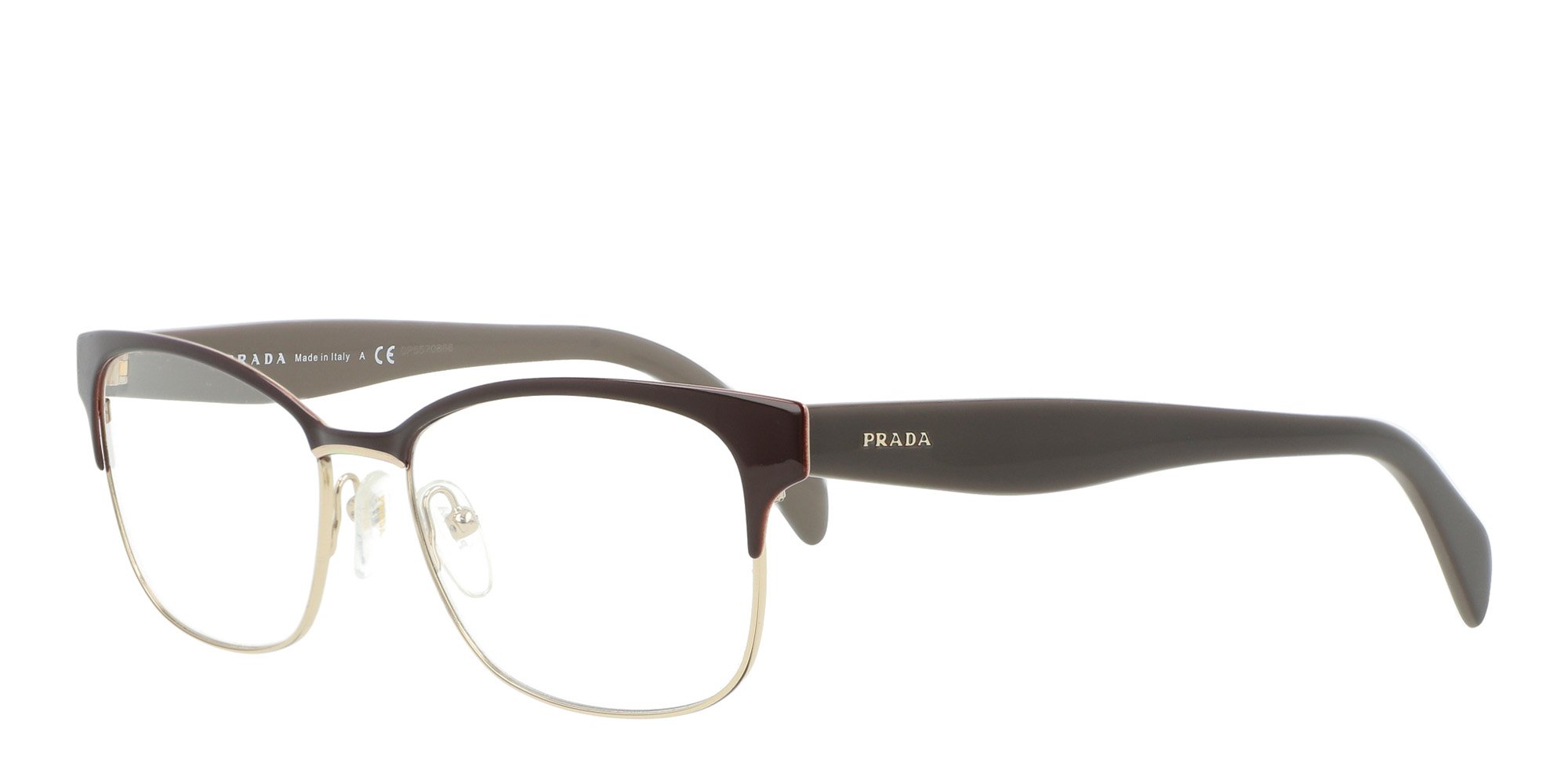 The PR 65RV eyeglasses feature the innovative design and impeccable quality that Prada is known for. The full rims are made from corrosion resistant metal, offering strength and stability that support your busy lifestyle. And the subtle cat eye shape with the signature Prada logo on the temple nod to your impeccable taste. Prada combines high standards for quality and fashion forward thinking in these on trend glasses personalize your look with this fresh and sophisticated style.