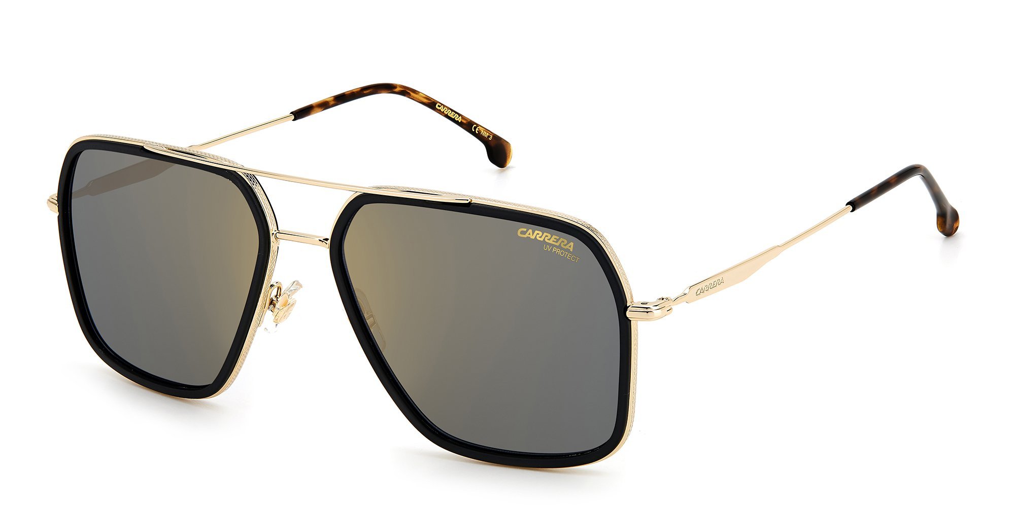The Ray-Ban RB3683 sunglasses add style to any wardrobe. These square, full rim shades boast a pronounced browline and bouble bridge for an effortlessly cool look. The vintage inspired shark fin temples feature the signature icon for designer flair, and the corrosion resistant metal construction is lightweight yet sturdy. The RB3683 sunglasses from Ray-Ban come with easy to repair conventional hinges for added durability.