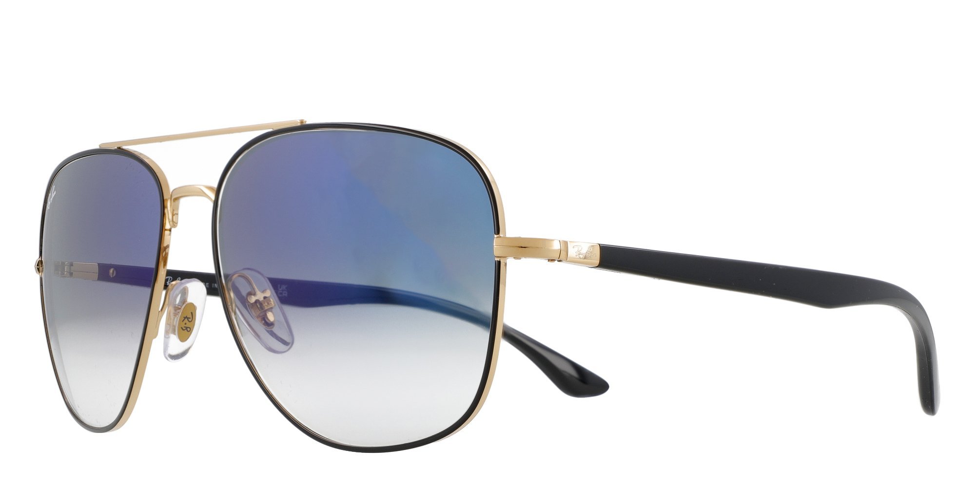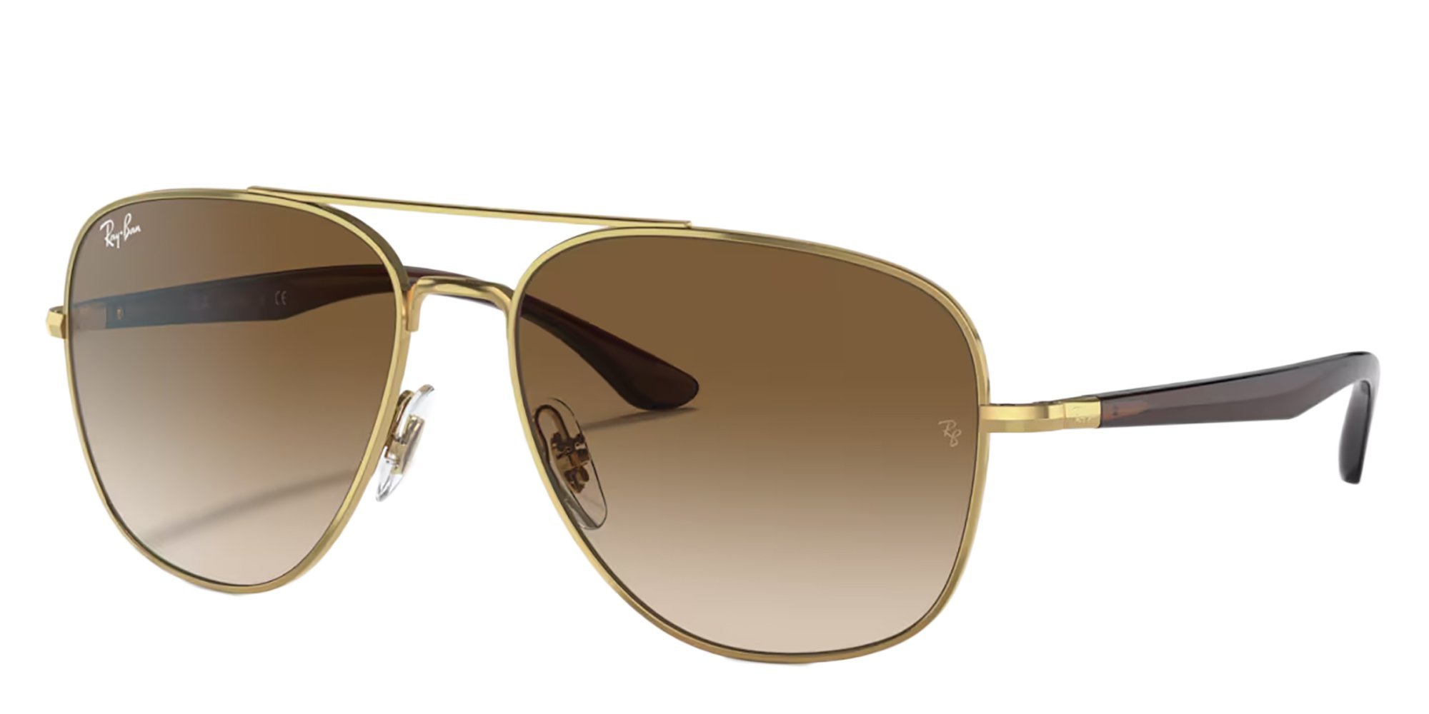 The Ray-Ban RB3683 sunglasses add style to any wardrobe. These square, full rim shades boast a pronounced browline and bouble bridge for an effortlessly cool look. The vintage inspired shark fin temples feature the signature icon for designer flair, and the corrosion resistant metal construction is lightweight yet sturdy. The RB3683 sunglasses from Ray-Ban come with easy to repair conventional hinges for added durability.